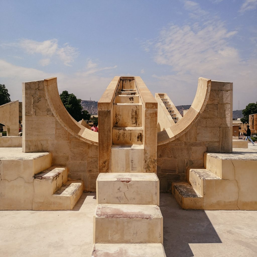 Nicht zu verwechseln mit Manta Manta. Das Observatorium Jantar Mantar ist voll von Skulpturen und Bauwerken, die zur Vermessung des Himmels genutzt wurden. Es sieht interessant aus, aber wie hier auf 2 Sekunden genau die Uhrzeit abgelesen werden kann, verstehen wir nicht so ganz.