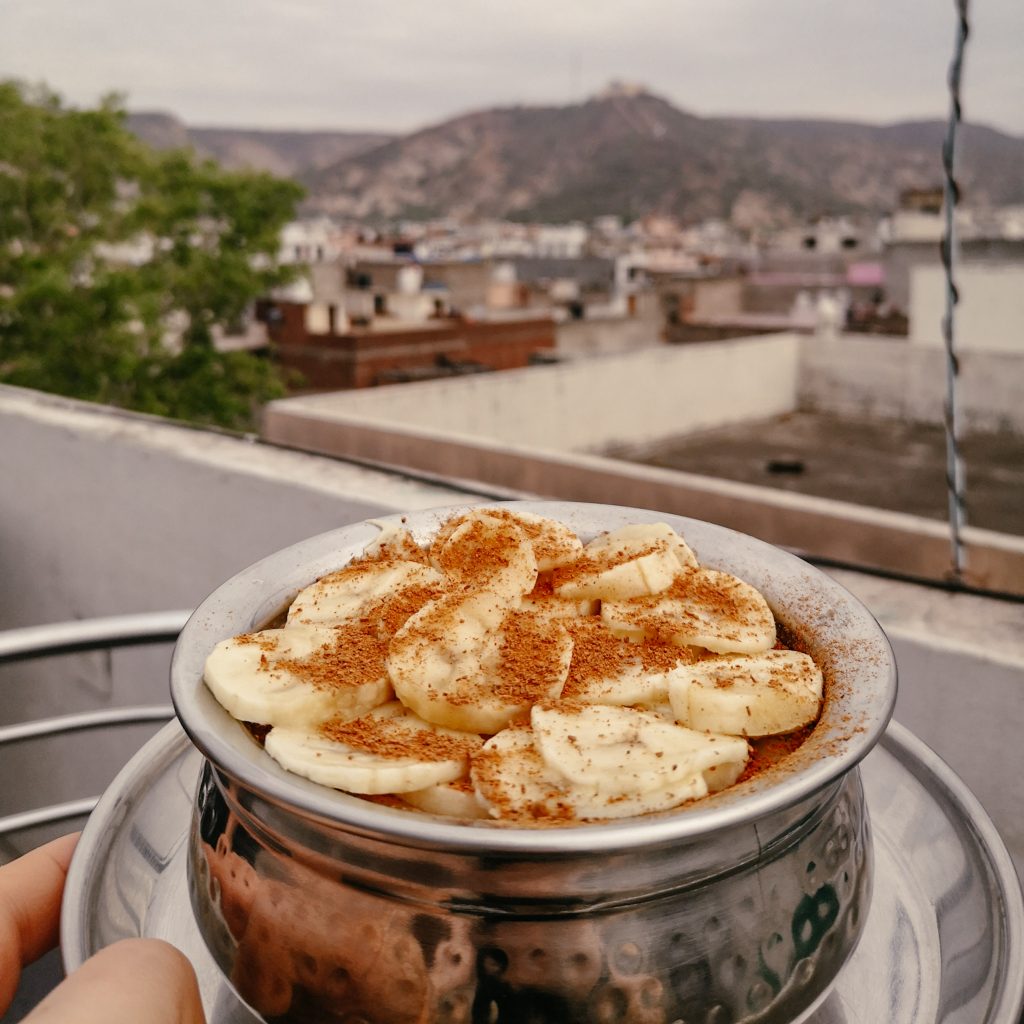 Angekommen in Jaipur fahren wir in unser Chillout Hostel, der Name ist Programm. Die beiden Typen vom Hotel sind sehr entspannt (dafür wird hier mithilfe von Pflanzen gesorgt). Auf der Dachterrasse läuft stets die passende Musik und auch das Essen ist hier wahnsinnig gut, wie wir in den nächsten Tagen feststellen werden.