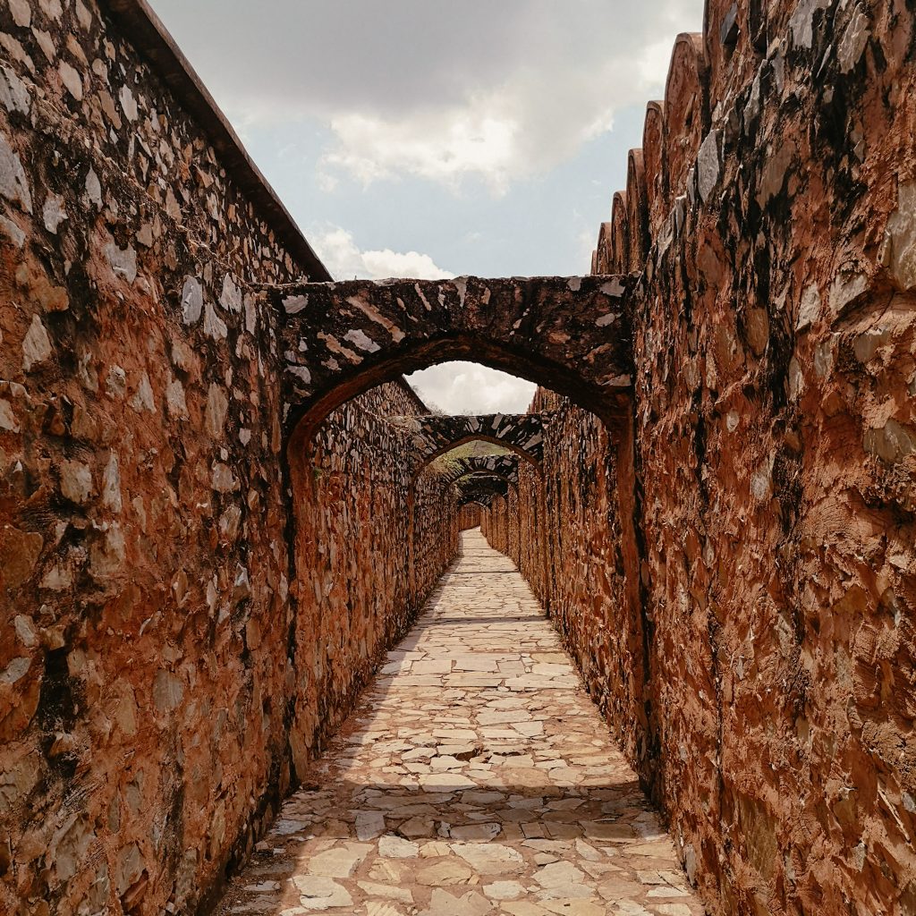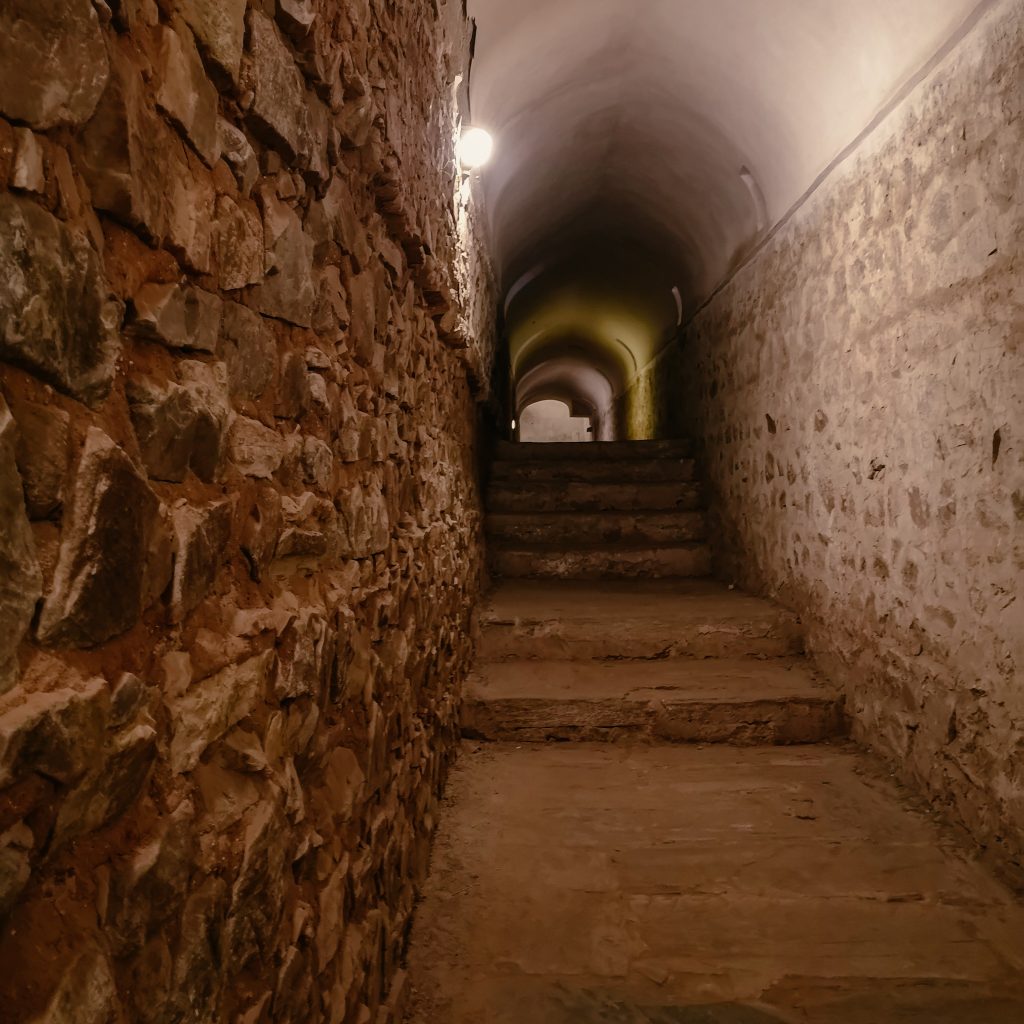 Beim Verlassen des Palastes (der Ausgang ist tatsächlich sogar ausgeschildert), stolpern wir über ein weiteres Schild „Tunnel“. Neugierig folgen wir den Stufen und landen in dem Tunnel, der zum nächsten Fort führt. Der Tunnel wurde in der Vergangenheit als Fluchtweg genutzt.