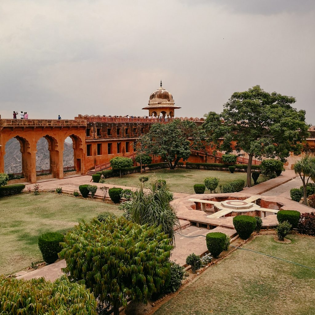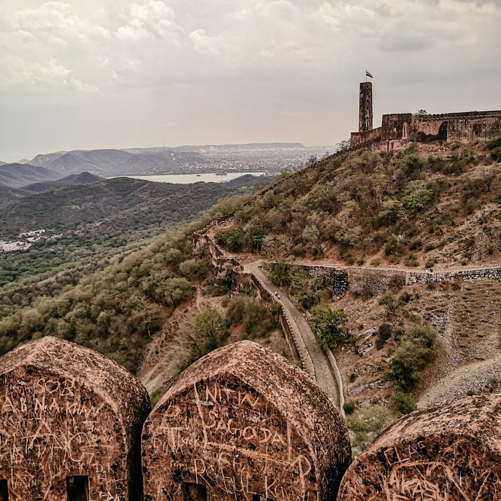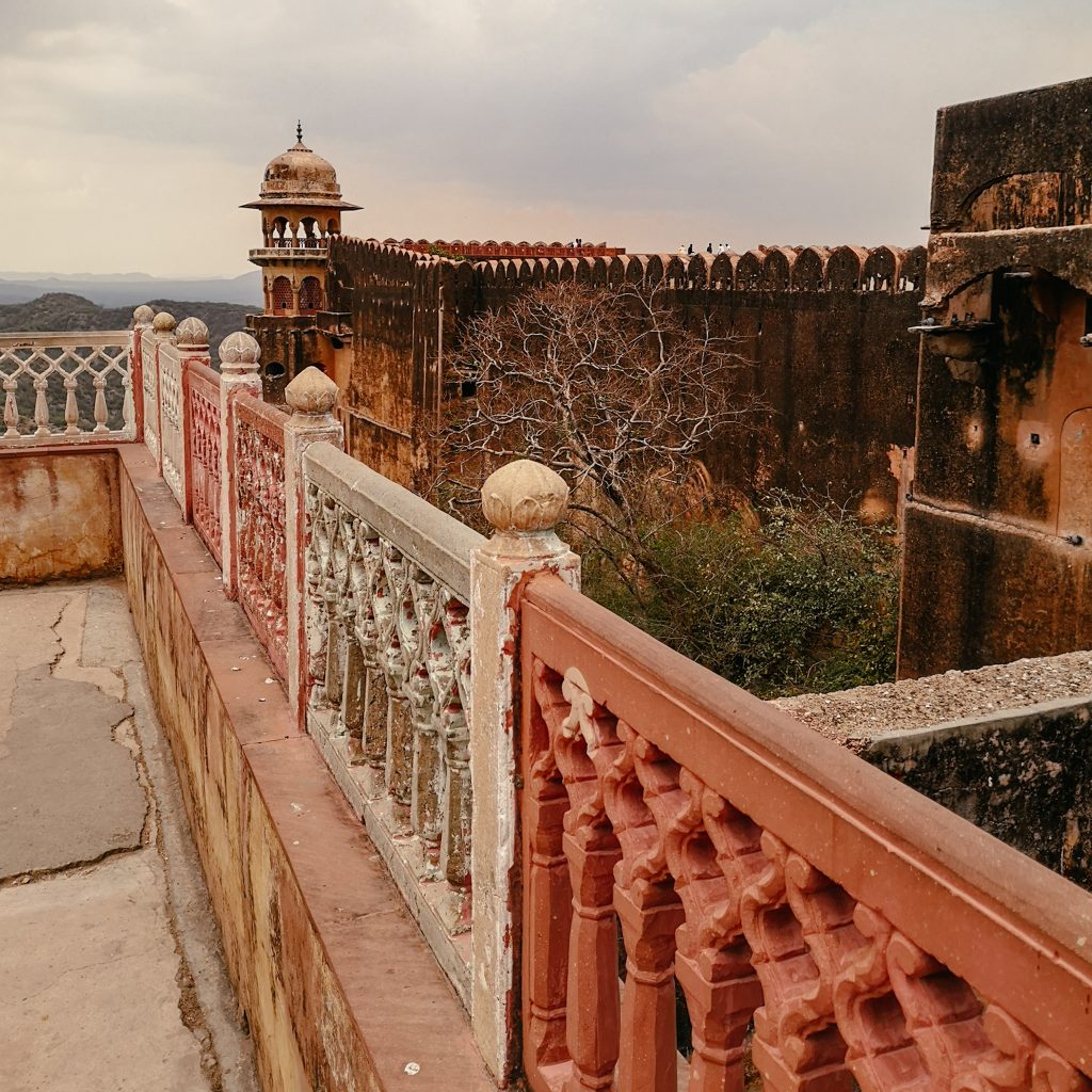 Das Fort wurde 1726 von Sawai Jai Singh zum Schutz des Amer Fort und seines Palastkomplexes erbaut und nach ihm benannt. Ein zentraler Wachturm auf einem erhöhten Boden bietet hervorragende Ausblicke auf die umliegende Landschaft. Wir lassen uns treiben, verlaufen uns auch hier wieder in den Gängen und genießen die Aussicht. In den Innenhöfen gibt es wieder angelegte Gärten, große Bäume und große Baumbewohner. Die Affen lassen sich durch die Besucher:innen nicht stören und setzen ihr Mittagessen fort.