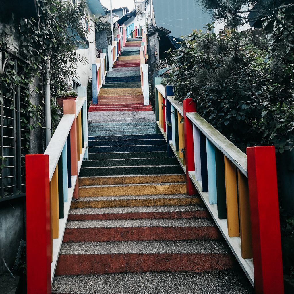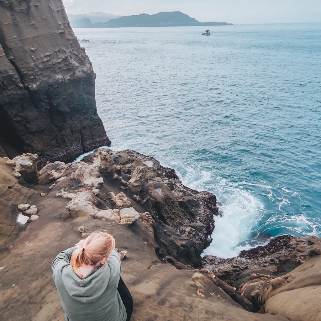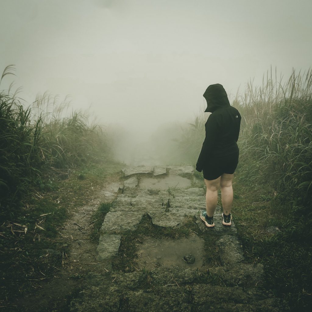 Wir wussten es ja bereits, aber wir können nochmal bestätigen: Die Wettervorhersage hält, was sie verspricht. Schon am frühen Morgen, als wir uns wieder auf den Weg zum Bus machen, ist es grau und regnerisch. Das wird sich heute auch nicht mehr ändern. Wir starten heute mit einer sehr kurzen Wanderung auf einen kleinen Berg direkt oberhalb von Jiufen. Es geht wieder Stufe für Stufe bergauf. Heute allerdings ohne eine traumhafte Aussicht auf die umliegenden Berge und das Meer. Alles, was wir sehen, ist Nebel, die nächsten Stufen vor uns und ein bisschen grünes Gewächs am Rand.