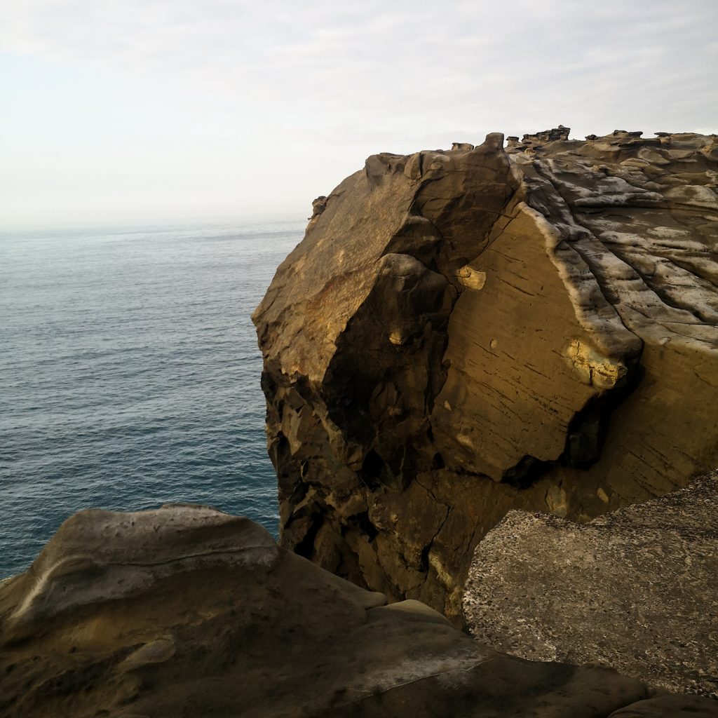 Dann müssen wir eben ein zweites Mal nach vorne laufen. Auf dem Felsen angekommen sind wir immer noch ratlos. Außer uns sind noch ein paar Leute hier oben, scheinbar um den Sonnenuntergang zu beobachten. Ein Herr spricht uns an: „Wollt ihr zum Elefanten?“ „Ja, genau.“ Wir nicken. „Der Elefant ist jetzt ein Capybara.“ Er lächelt und zeigt auf einen Felsen vor uns. Vor zwei Wochen ist der Kopf inkl. Rüssel vom Elefanten abgebrochen und ins Meer gestürzt. Oh no. Na gut, das hätte man ja auch wirklich nicht erahnen können. Außer man liest aktuelle Google Bewertungen, aber das ist ein anderes Thema. Und nein, natürlich ist hier nicht im Ansatz ein Capybara zu erkennen, aber süß, dass die Menschen sich eine Alternative überlegt haben. Mittlerweile nähern wir uns dem Sonnenuntergang und die Felsen leuchten schön in der Abendsonne. Alleine dafür hat sich der Weg hierher nochmal gelohnt.