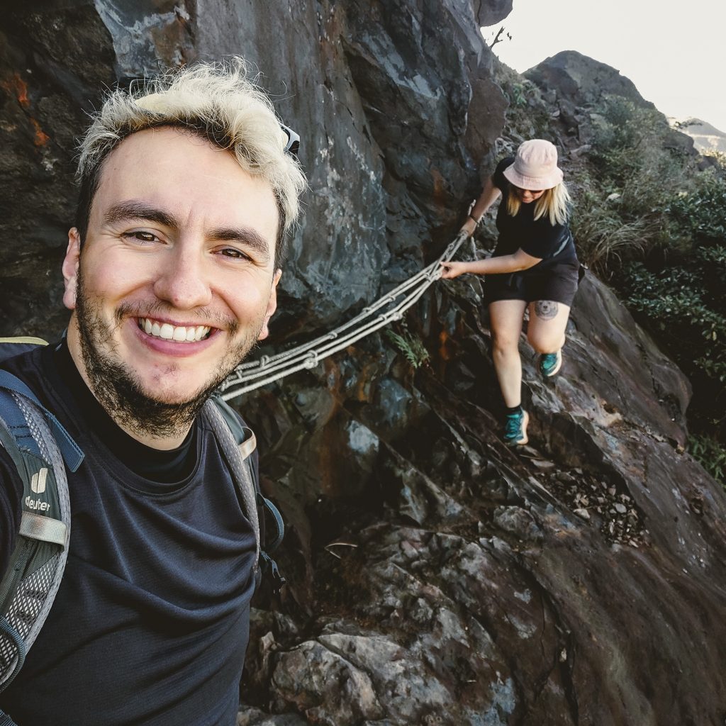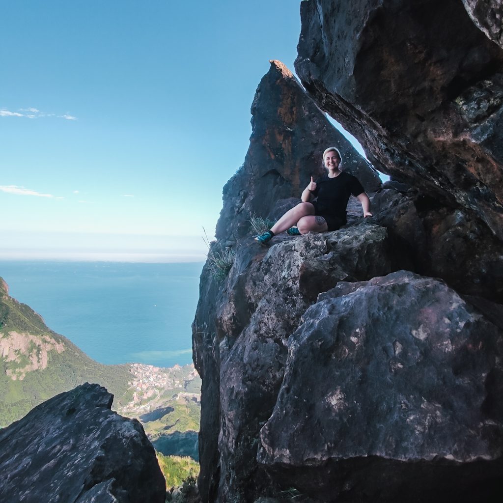 Am nächsten Morgen quälen wir uns früh aus dem Bett. Wir nehmen den Bus um 7 Uhr, um früh Richtung Teekanne zu starten. Denn genau so heißt unser heutiger Trail. Als wir nach ein paar Unsicherheiten doch irgendwann den richtigen Trail gefunden haben, geht es erstmal bergauf. Knie-schonend mit viiiielen Treppen und noch mehr Treppen. Dafür werden wir aber schnell belohnt, denn hinter uns ist direkt das Meer und ein richtig schöner Küstenstreifen. Wie traumhaft schön es hier ist! Das Wetter ist heute absolut auf unserer Seite, der Himmel ist wolkenlos und die Sonne kommt nun immer mehr zum Vorschein. Kurz vor dem Ende ist nun auch der Teapot zu erkennen.