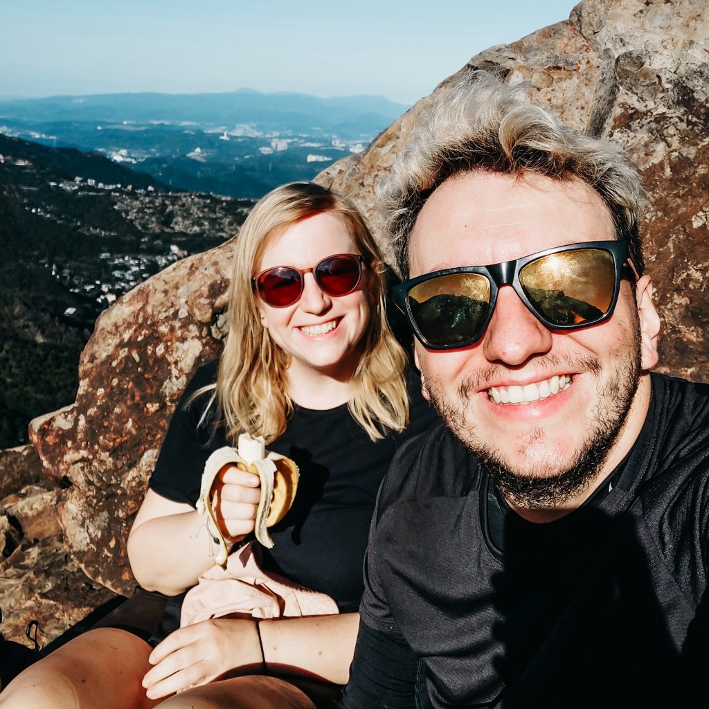 Also mit viel Fantasie. Hinweisschilder warnen vor dem letzten Stück, es wird wohl steil und rutschig. Trotz Caros Höhenangst klettern wir weiter an einem Seil nach oben. Wir wissen nur leider so gar nicht, wo wir entlang gehen müssen. Ein Seil führt quasi senkrecht nach oben, eins führt weiter zwischen den Felsen entlang und nach einer Aussichtsplattform wie auf den Fotos sieht es schonmal so gar nicht aus. Bei einer schwindelerregenden Spalte muss Konsti dann alleine auf Erkundungstour gehen, wer weiß schon, ob es dahinter überhaupt weiter geht? Es lohnt sich, abzuwarten. Konsti kommt wieder zurück und wir finden einen alternativen Weg. Einmal um die Ecke machen wir dann Rast und gönnen uns eine Banane im Sonnenschein. Wenn man erstmal seinen Po auf einem riesen Felsen geparkt hat, hinter sich eine stabile Rücken-Ablage-Komponente und nach vorne ausreichend Platz bis zur Kante, dann lässt es sich entspannt 15 Minuten in der Sonne aushalten. Entweder wir entscheiden uns nun für einen alternativen Rückweg oder wir gehen den gleichen zurück. Für die alternative Route wissen wir allerdings nicht so recht den Weg, die Dauer und die Begebenheiten. Wir entscheiden uns für den gleichen Rückweg. Dieses Mal klettern wir aber unten an der Teekanne vorbei, das ist wesentlich entspannter, wie sich später herausstellt.