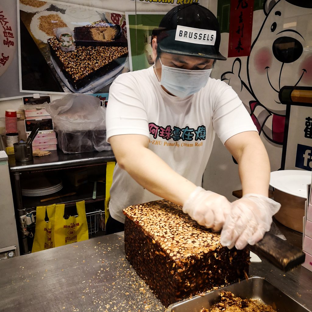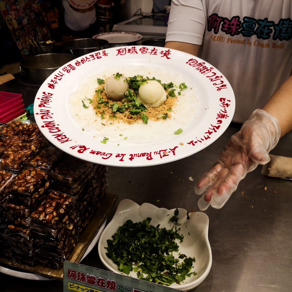 Bei so vielen Essensangeboten können wir natürlich nicht nein sagen. Taco und Tim haben uns neben Tipps zum Wandern auch den dringenden Rat mitgegeben, unbedingt eine Peanut Icecream Roll zu testen. Na gut, dann müssen wir das wohl probieren 🤷🏻♂️🤷🏼♀️ Der Stand ist schnell gefunden und gespannt stehen wir vor dem Schaufenster und schauen dem tüchtigen Eismann bei der Arbeit zu. Ihr könnt euch es folgendermaßen vorstellen: