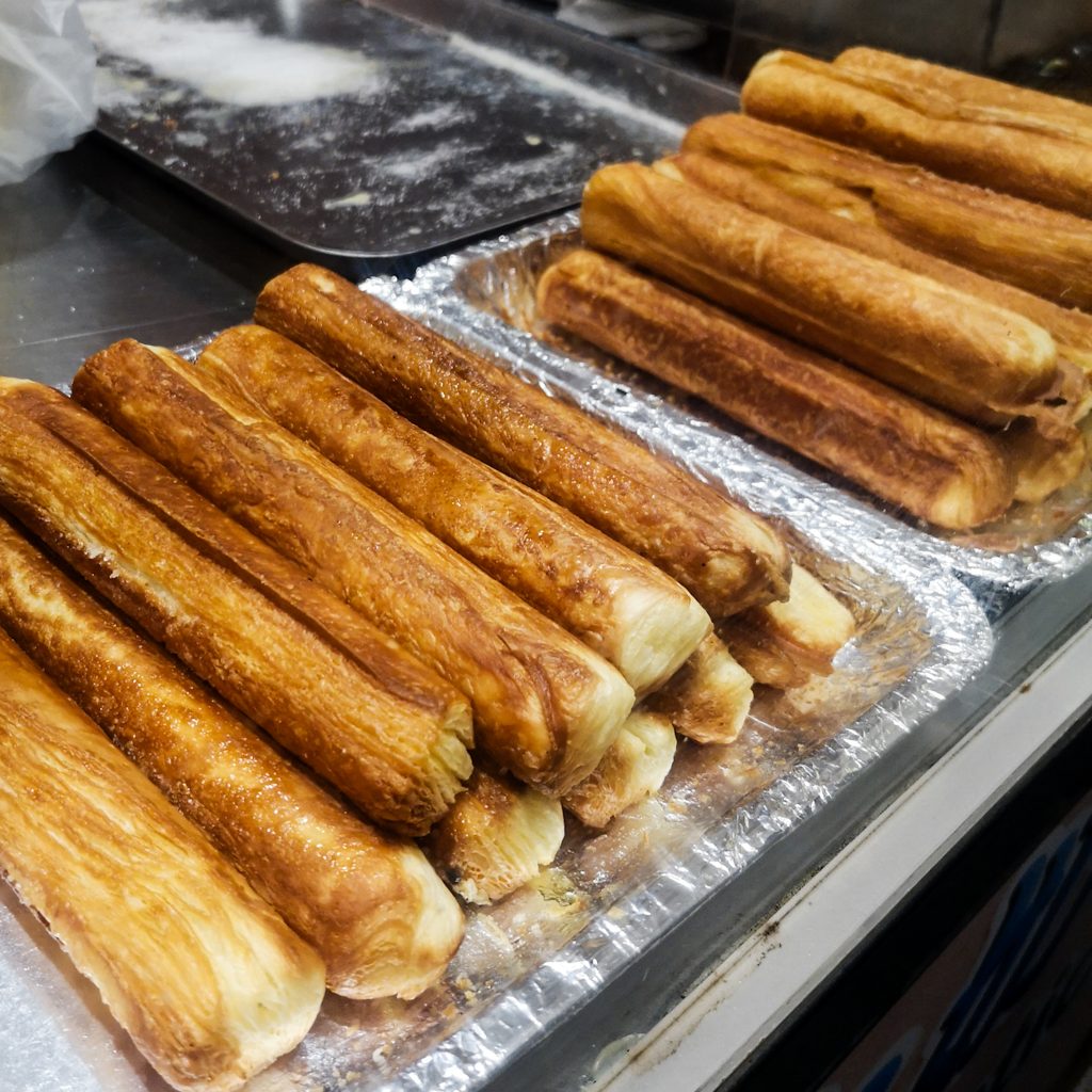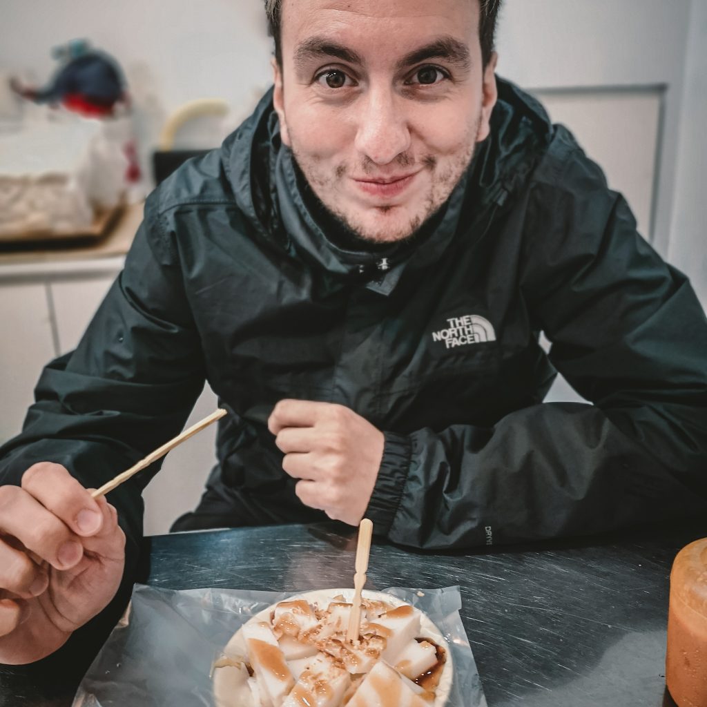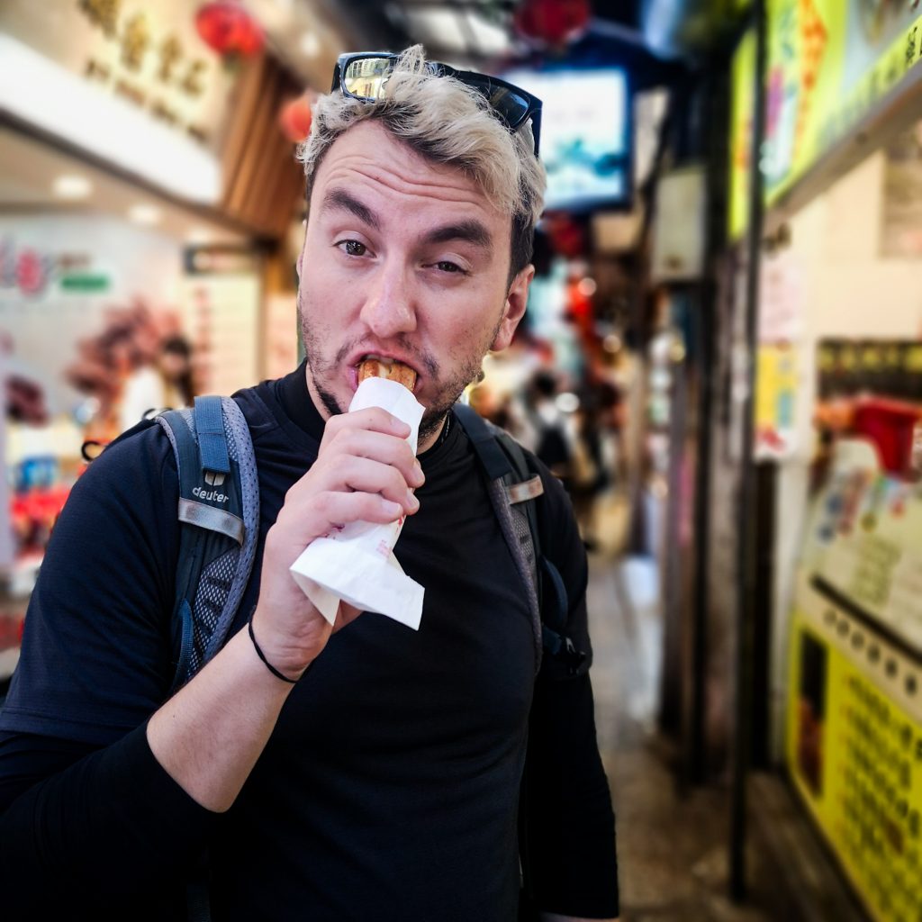 Wir ziehen weiter und schauen uns neugierig all die Geschäfte und Shops an. Was können wir wohl als nächstes probieren? Wir entscheiden uns für zwei frisch gebackene Ananas-Küchlein in zwei Geschmacksrichtungen und einen Cheese Milk Stick. Das hört sich erstmal komisch an, schmeckt aber quasi 1:1 wie ein warmes Croissant 🥐💯.