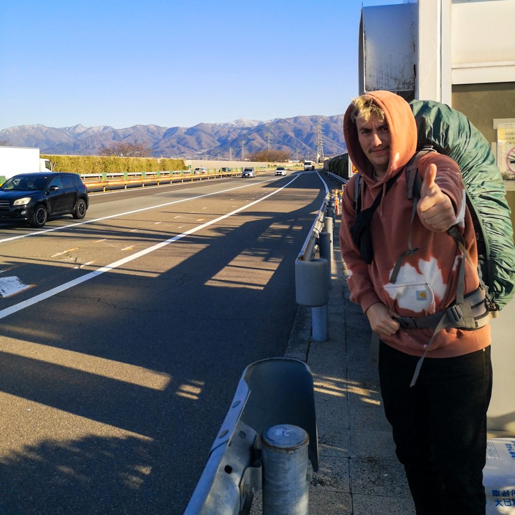 Da Kōfu nicht die Endstation unseres Buses ist, steigen wir unterwegs aus. Entgegen unserer eigentlichen Vorstellung allerdings nicht an einem normalen Busbahnhof, sondern schlichtweg am Seitenstreifen der Autobahn/Schnellstraße.