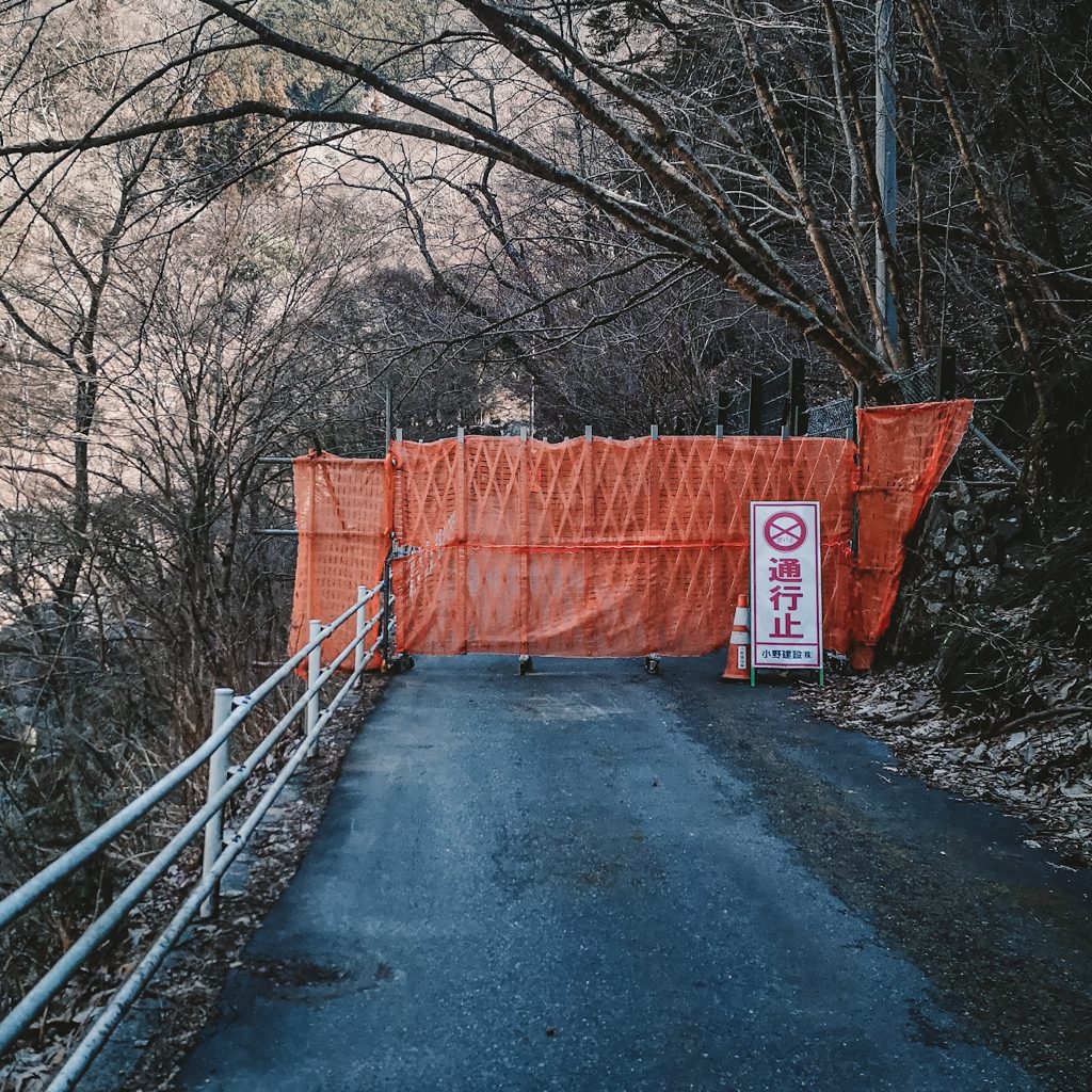 Zwischendurch machen wir einen kleinen Abstecher zu einem Tempel, und landen in einer Sackgasse, da der Weg anscheinend aktuell gesperrt ist. Es kamen zwar schon vor 400 Metern immer wieder irgendwelche Warnschilder, aber diese waren nun mal auf japanisch und weit in der Vergangenheit datiert. Wir wollen es trotzdem versuchen und tja, landen vor einer kompletten Absperrung. Da gibt es wirklich kein Vorbeikommen, also gehen wir zurück und nehmen ein Stück die Straße.