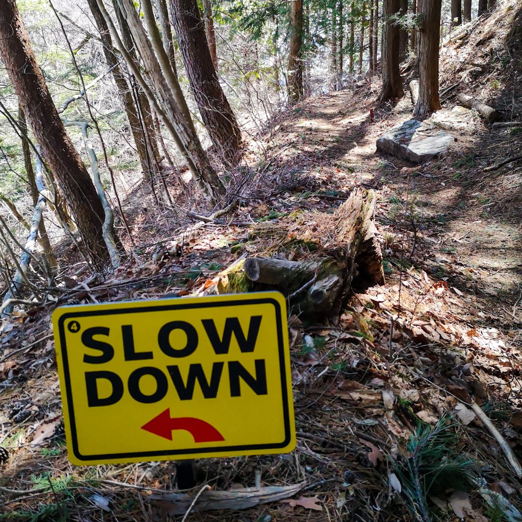 Aber die Route ist ohnehin relativ einfach. Wir laufen entlang des Wassers leicht bergauf. Im Herbst muss es hier definitiv am schönsten sein. Dann sind die unterschiedlichen Laubbäume sicher in allen rot-orange Tönen eingefärbt. Immer wieder kommen verschiedenste lustige Beschilderungen, die den verschieden geformten Felsen Namen geben. Es ist nicht das erste Mal, dass Felsen an Tiere oder sonstige Sachen erinnern sollen. Aber so absurd oder nennen wir es fantasievoll, war es noch nie. Der „tofu shaped rock“ war unser Highlight. Was genau soll dort erkennbar sein? Ein etwas eckiger Fels, der an einen Tofu-Würfel erinnert? Oder befinden wir uns in Sphären verschiedenster Tofu Gerichte, in denen der Tofu auf unterschiedlichste Art und Weise verarbeitet wurde? Diese Frage können wir uns, selbst nach intensiver Betrachtung, einem kurzen Brainstorming mit anschließender offener Diskussion nicht beantworten. Vielleicht sammeln wir noch etwas Kraft und Energie auf dem Weg nach oben, lassen uns inspirieren und kommen beim Rückweg nochmal erneut zu dieser Frage. Erstmal gehen wir den Weg weiter an einigen Schildern vorbei, die vor Bären warnen.