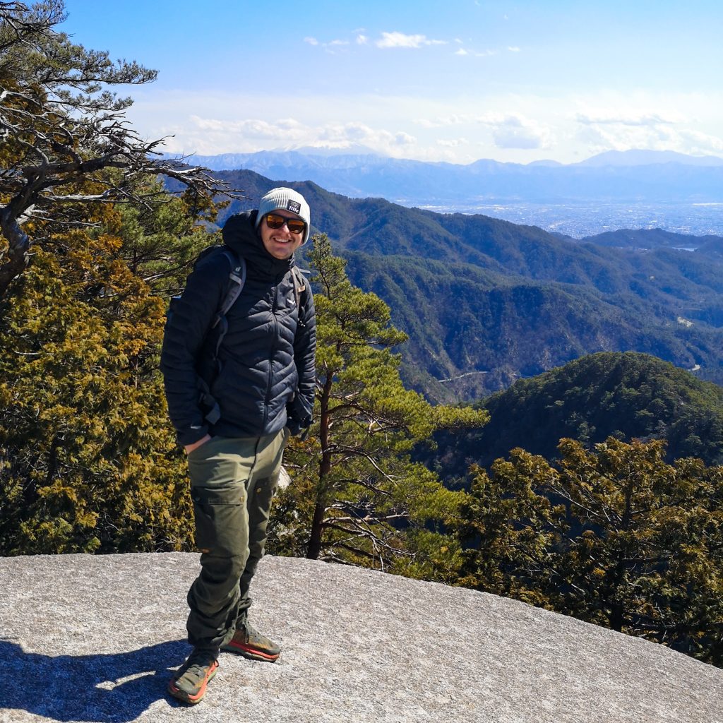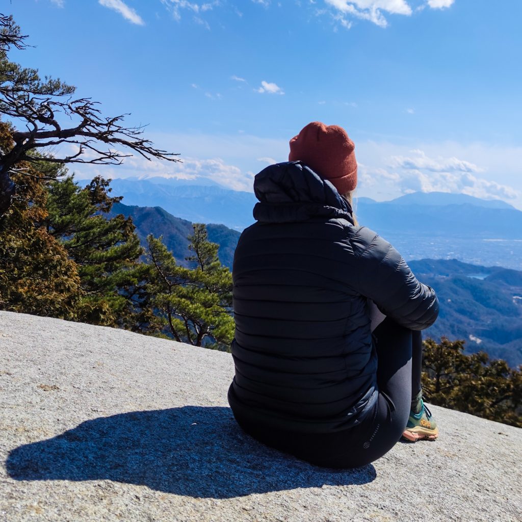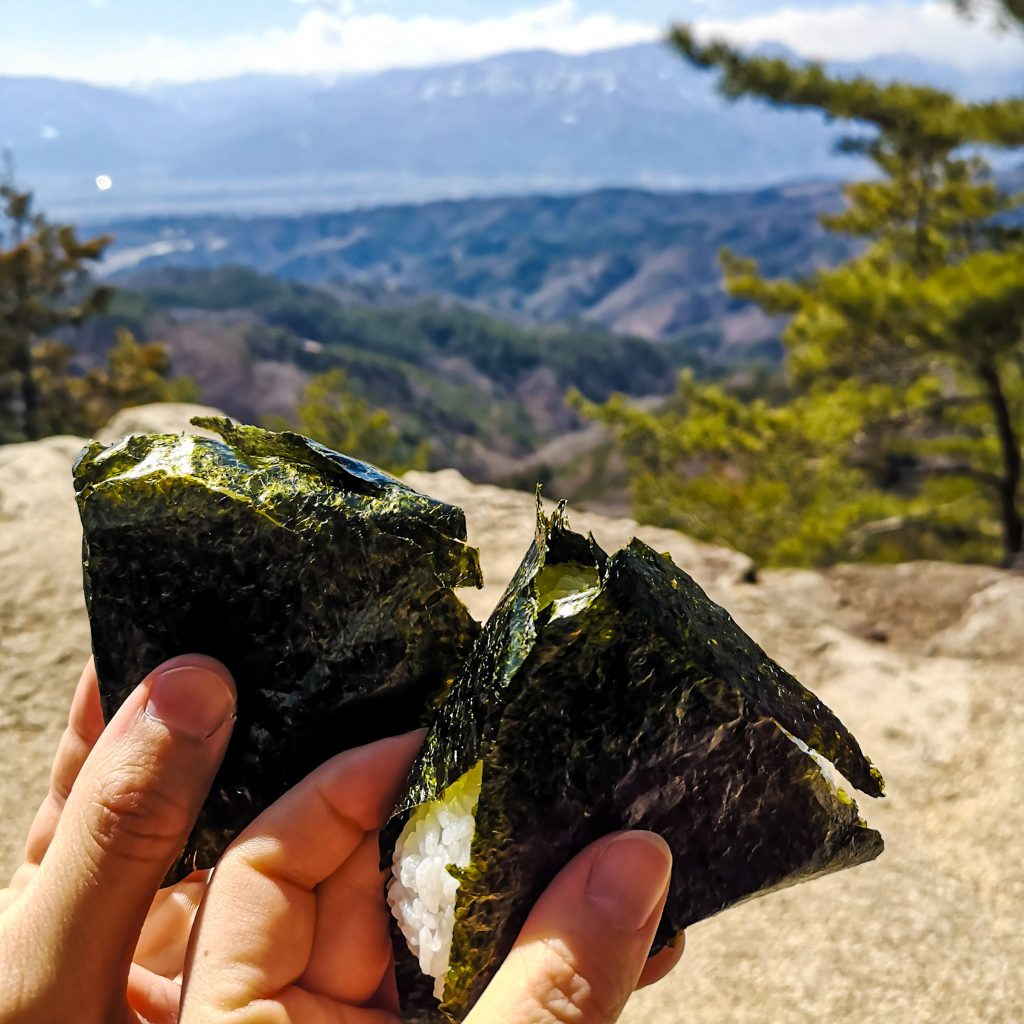 Eine gute Entscheidung, denn keine 20 Minuten später sind immer mehr Wolken rund um den kleinen Zuckerhut. Von hier oben haben wir eine coole Aussicht. Zur Belohnung für den Anstieg gibt es Onigiris und den guten Whiskey. Nach der Stärkung gehen wir noch eine Runde hier oben spazieren. Es gibt einen Tempel und einen kleinen Trampelpfad, der uns ein kleines Stück weiter nach oben auf einen Felsen führt.