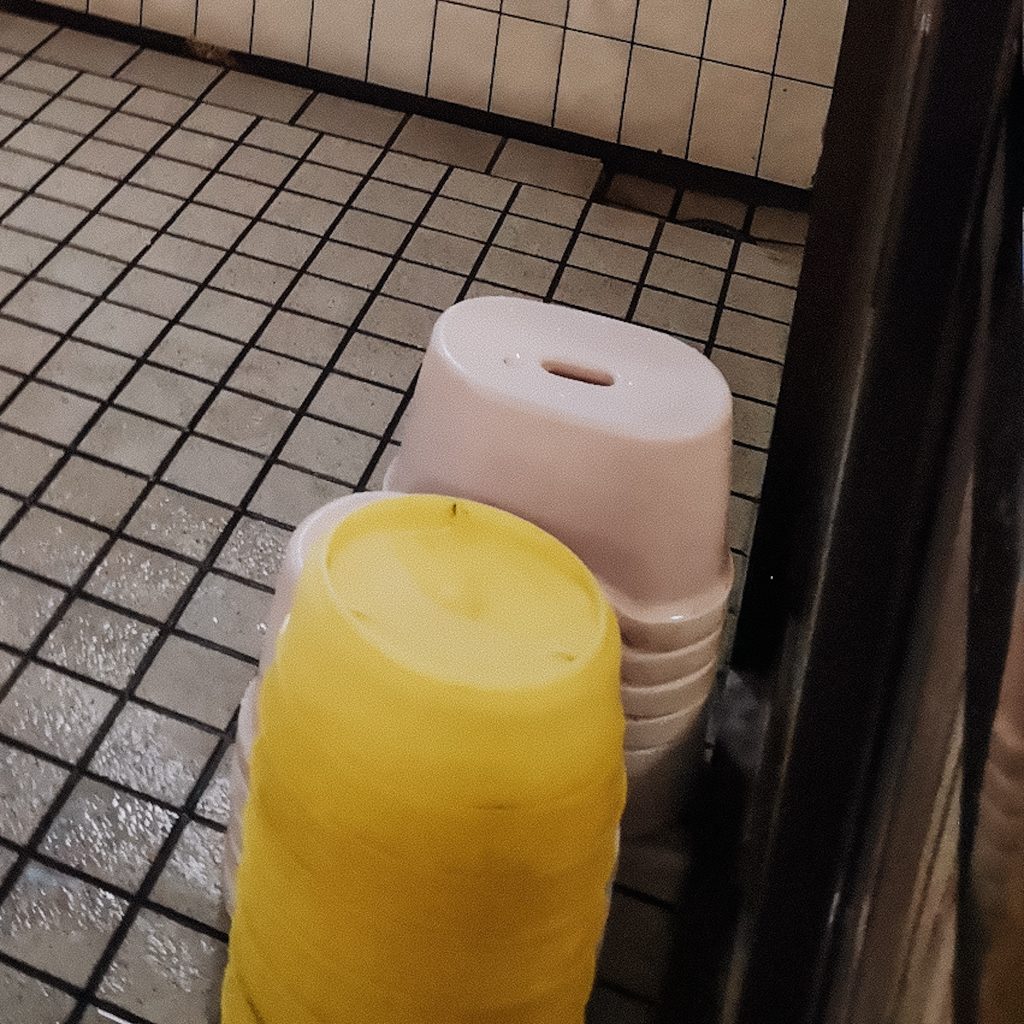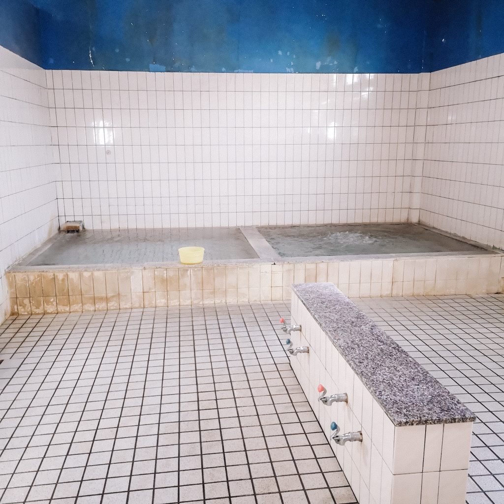 Während ich quasi schon dabei bin, mich auszuziehen, kommt der Besitzer vom Onsen noch einmal in die Umkleide spaziert. Zusätzlich zum Duschzeug reicht er mir erst noch Shampoo und dann ganz aufmerksam eine Spülung. Mit Händen erklärt er, wofür die einzelnen Flaschen gedacht sind, bei der Spülung muss er selbst lachen, wahrscheinlich ist sein persönlicher Erfahrungsschatz mit Spülungen begrenzt. Danach bin ich alleine und dennoch etwas unentspannt. Wer weiß ob er mir noch ein Peeling oder sonstiges anbieten möchte und gleich wieder hereinspaziert kommt. Also ziehe ich mich schnell aus und hüpfe hinter die Schiebetür in das tatsächliche Onsen. Im vorderen Bereich gibt es „Duschen“, im hinteren Bereich gibt es zwei Becken mit sehr heißem Wasser. Wie auch beim ersten Onsenbesuch sind die Duschköpfe auf Hüfthöhe angebracht, man muss sich also einen Hocker nehmen, um sich hier abzuduschen. Ich bin glücklicherweise komplett alleine und kann es mir im heißen Becken bequem machen. Die Becken haben übrigens auch nur eine ungefähre Tiefe von 60-70 cm. Das Wasser ist unfassbar heiß und mir wird schnell klar, dass ich es wahrscheinlich keine 15 Minuten hier drin aushalte. Dann lieber ausgiebig duschen. Als ich merke, dass mir fast schon schwindelig wird, verlasse ich das Becken, schnappe mir einen Hocker und dusche zum ersten Mal in meinem Leben im Sitzen. Warum zur Hölle macht man das hier so? Ich erkenne wirklich keinen Vorteil darin, mein nacktes Gesäß auf einem Plastikhocker zu platzieren, auf dem zuvor schon 2.000 andere nackte Pos hin und her gerutscht sind. Das lässt mein Kopfkino auf Hochtouren laufen. Oder ich hab das Prinzip des Hockers einfach nicht durchblickt. In der Umkleide lasse ich mir Zeit beim Anziehen, Konsti und ich sind für 17:45 Uhr vor der Tür verabredet.