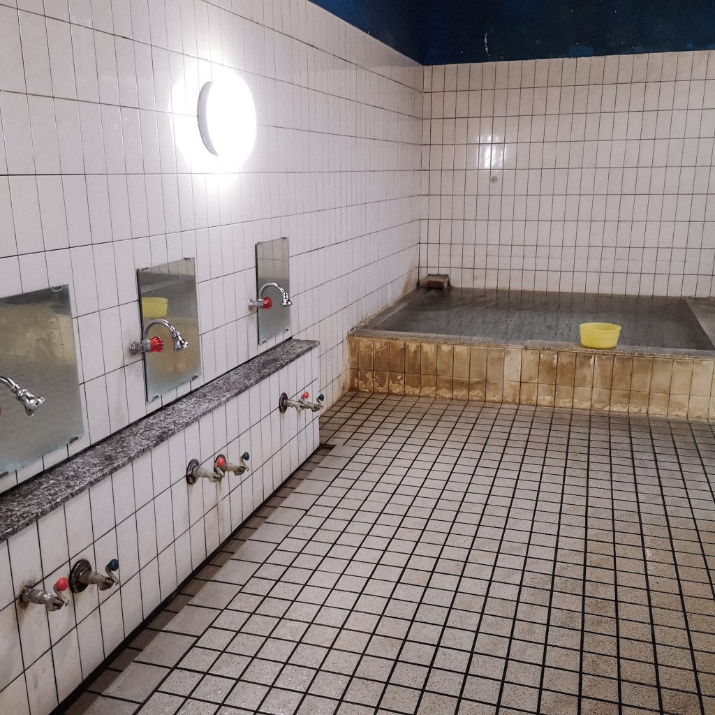 Da wir nicht in den verschwitzten Klamotten in den Nachtbus steigen wollen und wir in Osaka auch erst am Nachmittag einchecken können, sehnen wir uns nach einer Dusche. Also ab ins Onsen, das wollten wir sowieso nochmal wiederholen. Wir entscheiden uns für ein einfaches Onsen, das in der Nähe unseres Hotels ist. Hier haben wir zumindest in den Bewertungen nichts von einem Tattoo Verbot gelesen, allerdings auch nicht davon, dass es gestattet ist. Das Gebäude ist mitten im der Stadt und vom Eingang trennt uns ein Parkplatz, der mit Ketten umschlossen ist. Ein Mann tigert über das Gelände und wir sprechen ihn an oder machen eher auf uns aufmerksam, da er nur japanisch spricht und wir kein Wort verstehen. Die folgenden 5 Minuten lachen wir alle abwechselnd unsicher und verständigen uns mit einer Mischung aus Japanisch, Englisch, Online-Übersetzer sowie Händen und Füßen. Er zeigt uns den Weg nach drinnen und stattet und mit kleinen weißen Handtüchern und Shampoo aus. Caro versteht im übrigen erst nach dem Besuch wozu das kleine weiße Handtuch gedacht ist. Jetzt trennen sich unsere Wege und damit auch unsere Onsen-Erfahrung: