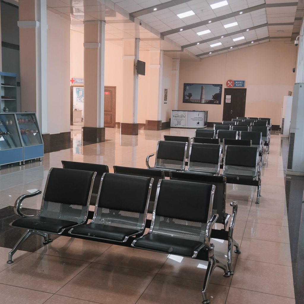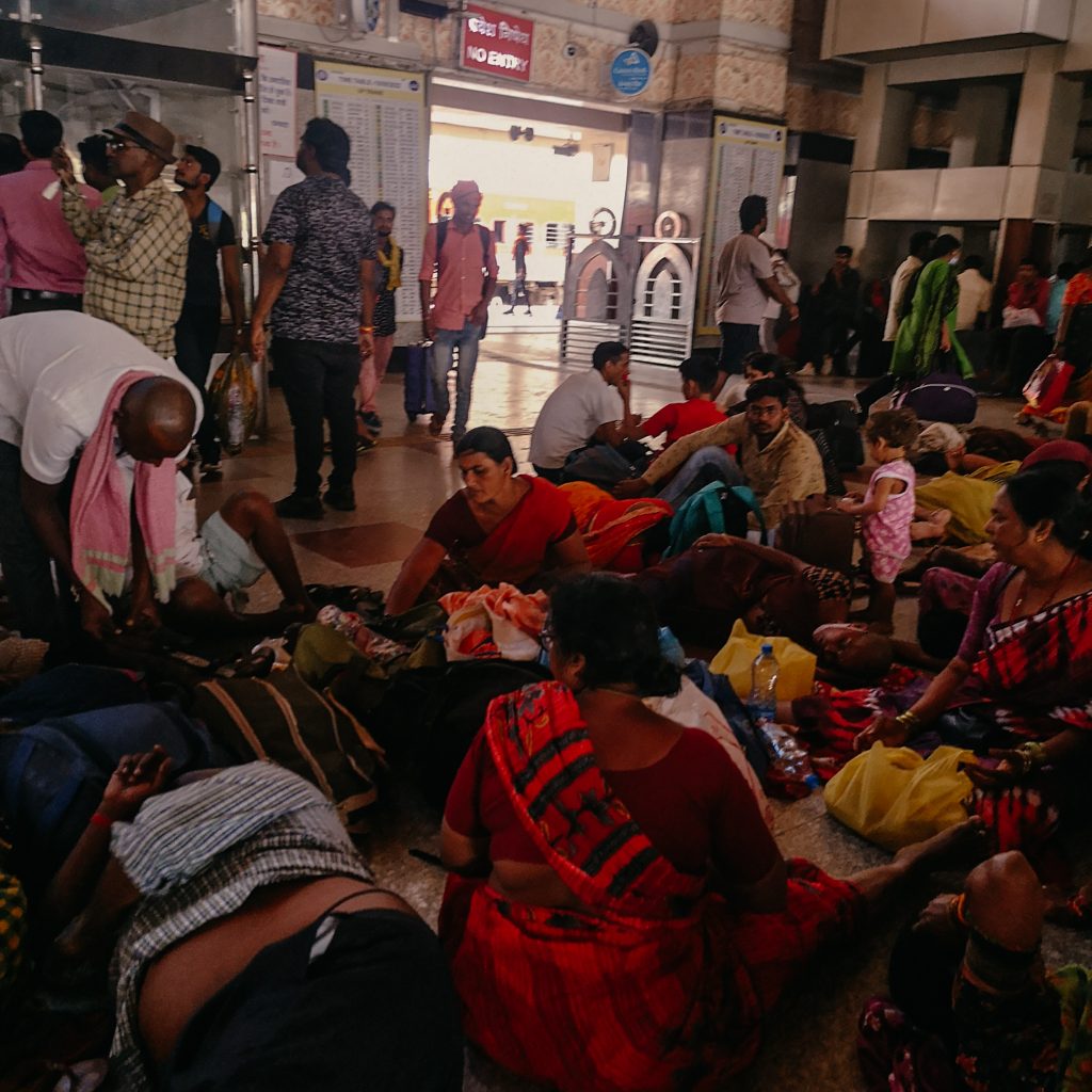Bevor wir zum Bahnhof fahren, wollen wir noch „schnell“ Bargeld abheben. Aber nichts da, laut einem Bankmitarbeiter gibt’s hier erst ab Montag wieder Geld. Okay. Hoffentlich haben wir in Kokand mehr Glück. Viel Bargeld haben wir leider nicht mehr. Danach geht’s zum Bahnhof. Der Bahnhof sieht auf den ersten Blick wie ausgestorben aus. Es gibt nur einen überwachten Eingang, alles ist wahnsinnig sauber. In der kleinen Eingangshalle sind dann aber doch ein paar Menschen. Alles ist sehr entspannt und überschaubar. Das gefällt uns. Hier noch ein kleines Bild zur Erinnerung wie es noch vor ein paar Wochen in Indien am Bahnhof aussah.