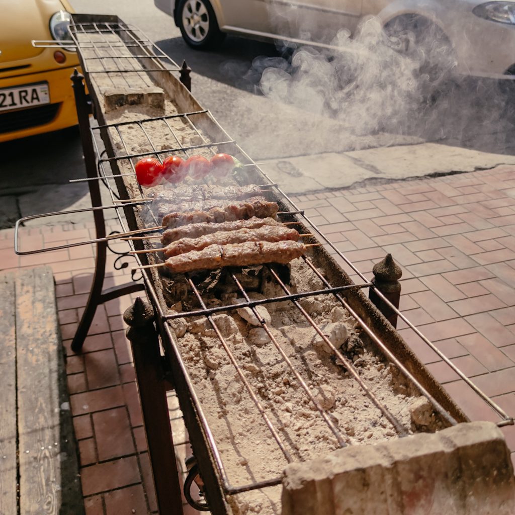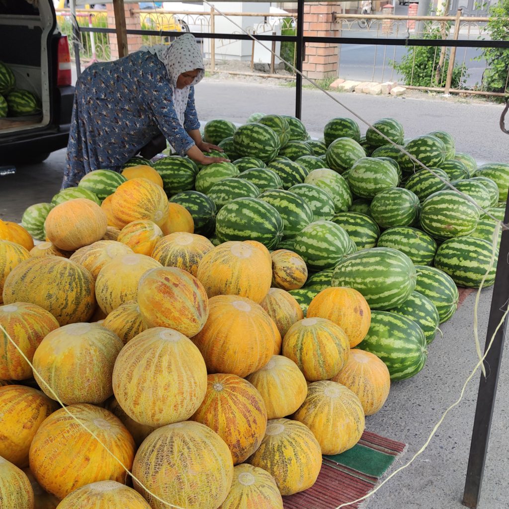 Danach geht’s wieder Richtung Hostel. Wir staunen über zahlreiche Melonenverkäufer:innen, Brotbäcker und Shashlikgriller, die bei dem Wetter ihre Produkte an der Straße verkaufen.