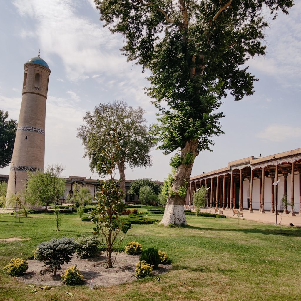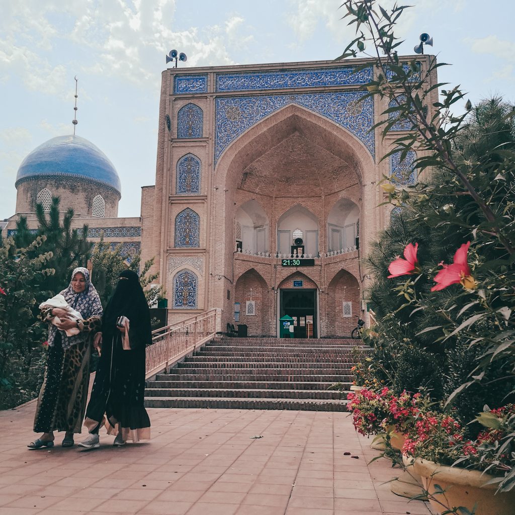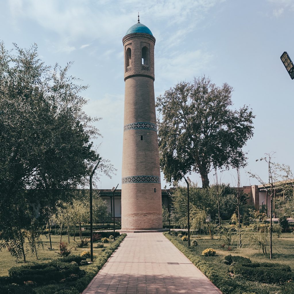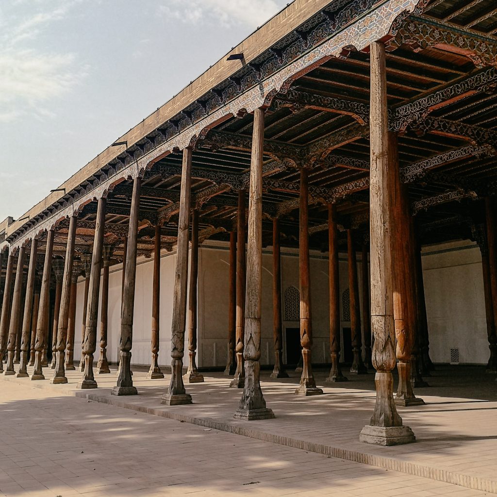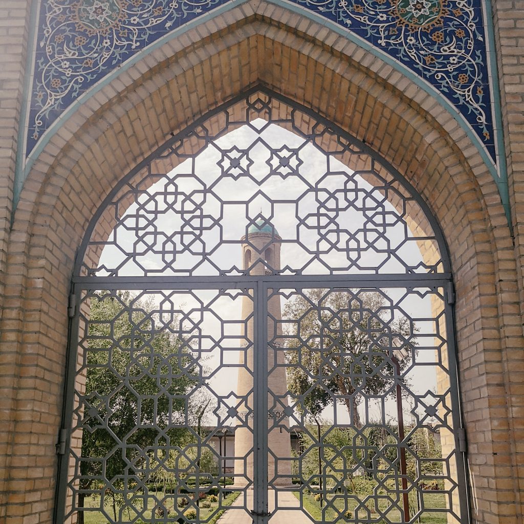 Die Juma Moschee ist direkt bei uns um die Ecke. Die 1812 von Umar Khan erbaute Moschee hat ein 22 m hohes Minarett und umfasst einen farbenfrohen, 100 m langen Aivan, der von 98 aus Indien mitgebrachten Rotholzsäulen getragen wird. Wir begutachten sie von außen, sparen uns aber den Eintritt.