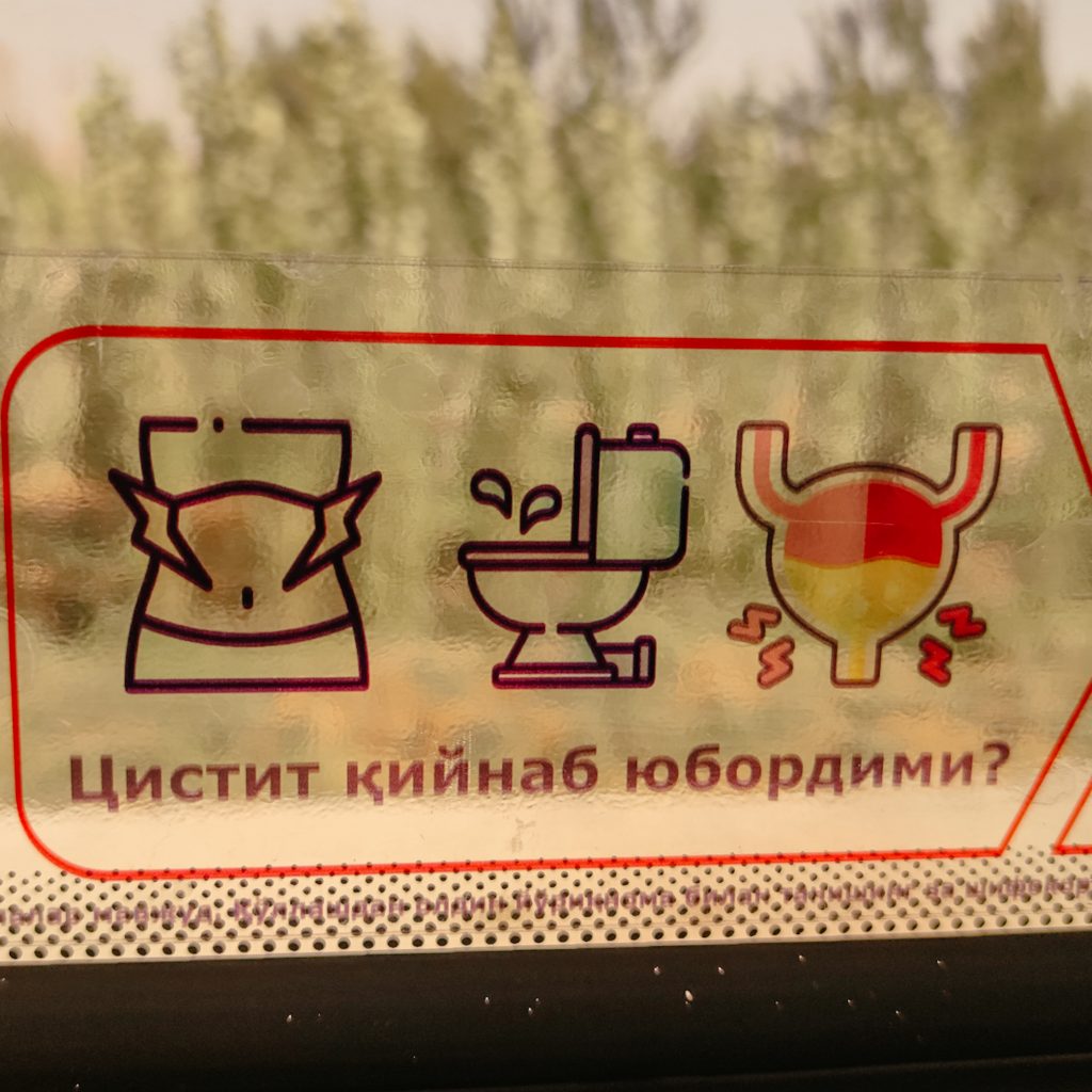 Wir sind begeistert, alles läuft sehr geregelt ab, das Personal zeigt uns den Zug und unseren Waggon und wir starten pünktlich Richtung Kokand. Also wenn so das Zugfahren so einfach ist, dann wird dies wohl unsere präferierte Fortbewegungsart. Die Züge sind sauber und nicht wirklich überfüllt (es werden so viele Tickets verkauft, wie es Sitzplätze gibt, Wahnsinn). Was es mit dem Schild (s.u.) auf sich hat, haben wir nicht so ganz verstanden. Einziger Haken: Das permanent schreiende Kind direkt hinter uns.. Wobei dieses Konsti auch nur geringfügig zu stören scheint. Auch bei der Ankunft erscheint der Bahnhof fast wie ausgestorben.
