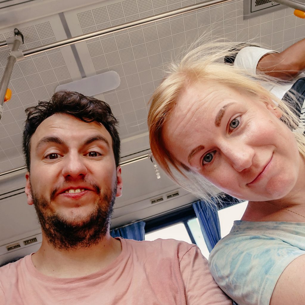 Wir genießen gerade einen kurzen Moment der Ruhe (O-Ton Konsti: „Ich bin froh, dass wir gerade einfach kurz chillen können und nicht interagieren müssen“), als wir von einem jungen Mann auf Englisch angesprochen werden. Er ist Englischlehrer und er ist mit seiner Klasse Jugendlichen unterwegs. Gerne möchte die Klasse ihr Englisch etwas „testen“ und ehe wir uns versehen, sind wir zu zwei englischsprachigen Versuchskaninchen vor einer Traube an Jugendlichen geworden, die jetzt um uns rum stehen. Sie freuen sich sehr und wir versuchen, so gut es geht alle Fragen zu beantworten. Wir erzählen ein bisschen über Deutschland (Wobei, was erzählt man eigentlich über Deutschland?), outen uns als nicht-verheiratet und Vegetarier:innen und erklären, dass bei uns Männer und Frauen gemeinsam studieren (und das sogar gleichberechtigt!!!). Die Schüler:innen wollen nämlich gerne irgendwann im Ausland studieren. Dann kommt unser Zug, wir verabschieden uns schnell, machen noch ein paar Selfies und Konsti verrät auf Nachfrage unseren Instagram-Account.