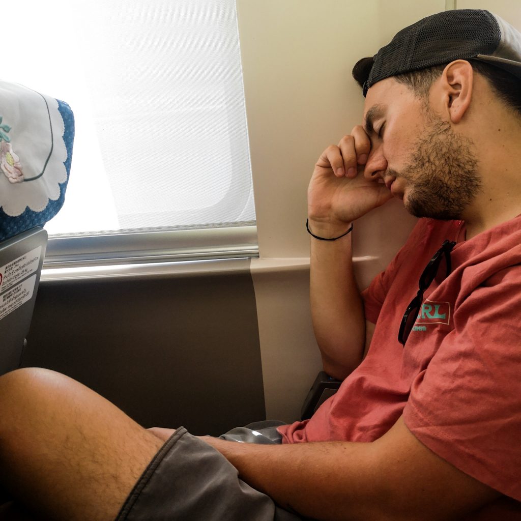 Ähnlich wie am Flughafen gibt es beim Betreten des Bahnhofs eine Gepäckkontrolle. Scharfe Gegenstände wie feststellbare Messer, Scheren und sonstige Waffen sind genauso verboten wie Druckgasbehälter wie Haarspray oder Deo. Prompt werden wir direkt beide heraus gewunken: Einmal die Rucksäcke öffnen bitte. Mist.