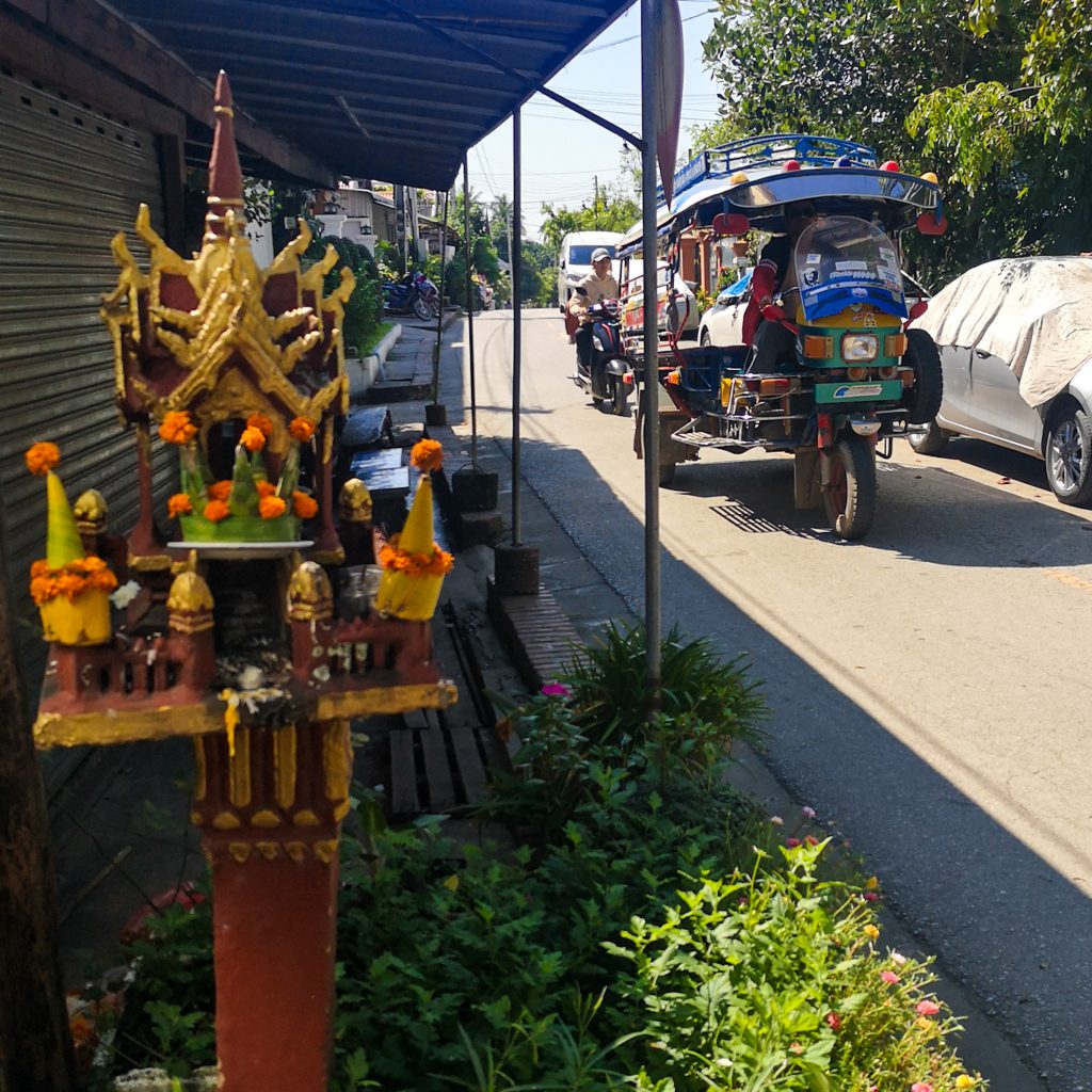 Etwas kritisch sehen wir das ganze schon. Auf der anderen Seite war es auch für uns interessant, sich die Zeremonie anzuschauen und wir waren mal wieder erstaunt, wie viele junge Männer oder besser gesagt Kinder dabei waren. Dies ist aber eigentlich gar nicht so verwunderlich, da viele Eltern ihre Kinder für mehrere Jahre im die buddhistische Lehre in die Tempel zu den Mönchen schicken. Lustigerweise verfolgen wir die Mönche sogar aus Versehen. Nachdem sie zwei Mal um den Tempel gegangen sind, gehen sie weiter durch die Straßen in Richtung unserer Unterkunft. Irgendwie scheint es jetzt authentischer zu werden. Im der Straße, in der auch unsere Unterkunft ist, sitzen zwei ältere Damen am Straßenrand und spenden ebenfalls. Danach beten sowohl die Damen als auch die Mönche. Wir gehen erstmal wieder ins Bett, statt zu schlafen schauen wir die erste Folge der neuen Staffel 7 vs. Wild. Heute mal ein alternativer Start in den Tag.