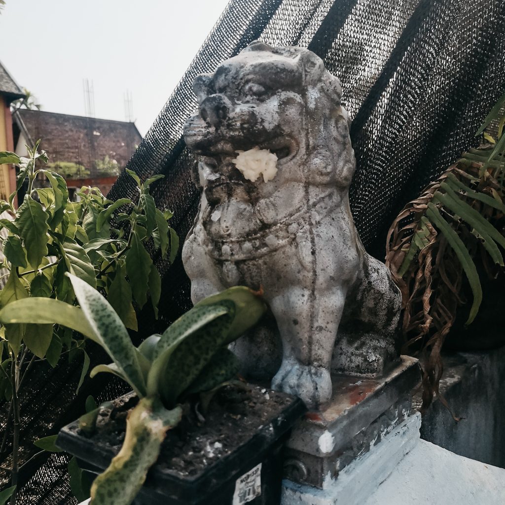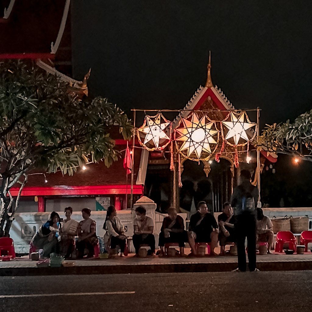 Denn auch Besucher:innen dürfen aktiv an der Zeremonie teilnehmen. Hierfür stehen kleine Plastikstühle in einer Reihe. Die Teilnehmenden können sich vorab Sticky Rice oder andere Gaben kaufen. Sie bekommen noch ein Tuch umgehangen und werden für das hygienische Verteilen des Reises mit einem Plastikhandschuh ausgestattet. Wir können jetzt nur von unser Erfahrung sprechen, aber die Teilnehmenden, die wir beobachtet haben, waren ausschließlich Chines:innen, die aus dem Nichts in Vans vorgefahren, wild gestikulierend von Reiseleitern auf ihre Plätze gebracht wurden und in Gruppen an der Zeremonie teilgenommen haben. Auch hier wurde sich nicht immer an die Regeln gehalten, speziell was das Fotografieren aus nächster Nähe angeht.