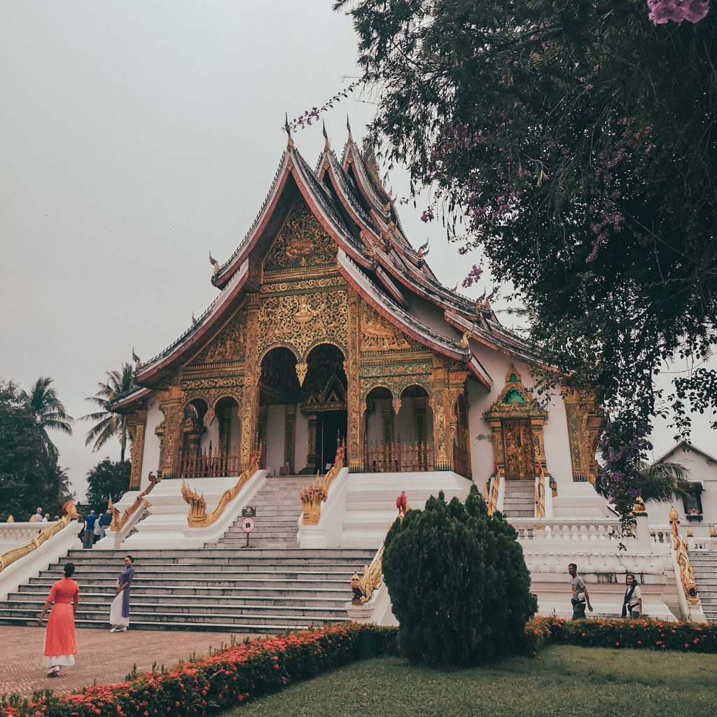 Weiter geht das Kulturprogramm. Die Straße herunter und vorbei am Nachtmarkt, kommt irgendwann der alte Königspalast – Ho Kham. Dieser wurde 1904 während der französischen Kolonialzeit für König Sisavang Vong und seine Familie gebaut. 1975 wurde die Monarchie von den Kommunisten gestürzt und die königliche Familie in Umerziehungslager gebracht. Anschließend wurde der Palast in ein Nationalmuseum umgewandelt. Auf dem Gelände steht ebenfalls ein Tempel, den können wir uns anschauen und auch fotografieren.