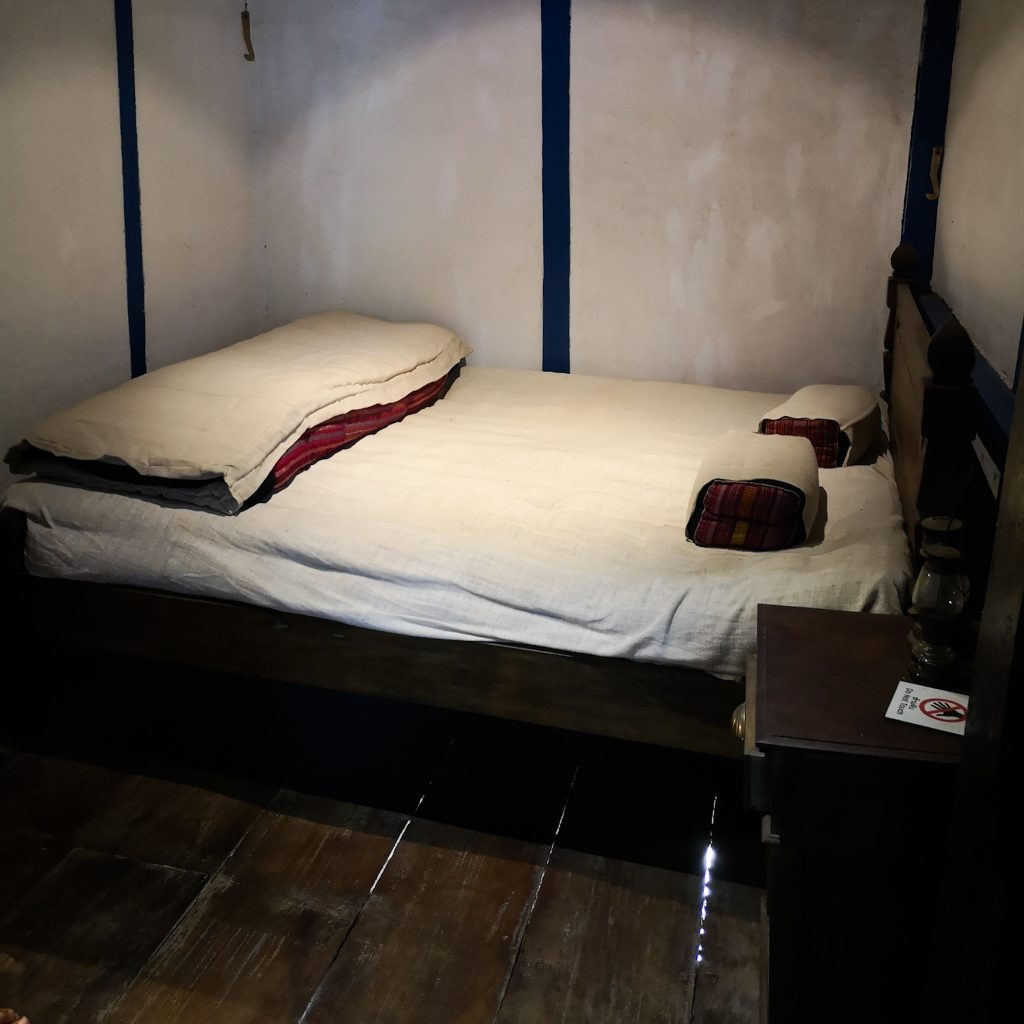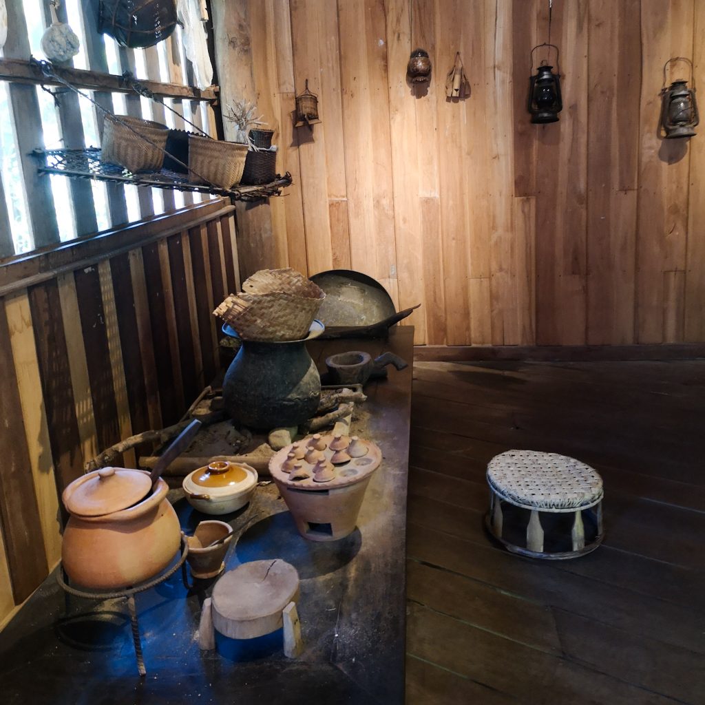 Es ist eine Art Mini-Freilichtmuseum mit einem typischen Holzhaus einer Familie aus etwas besserem Hause. Es ist auf Stelzen gebaut und die Räumlichkeiten sind möglichst authentisch nachgebaut.