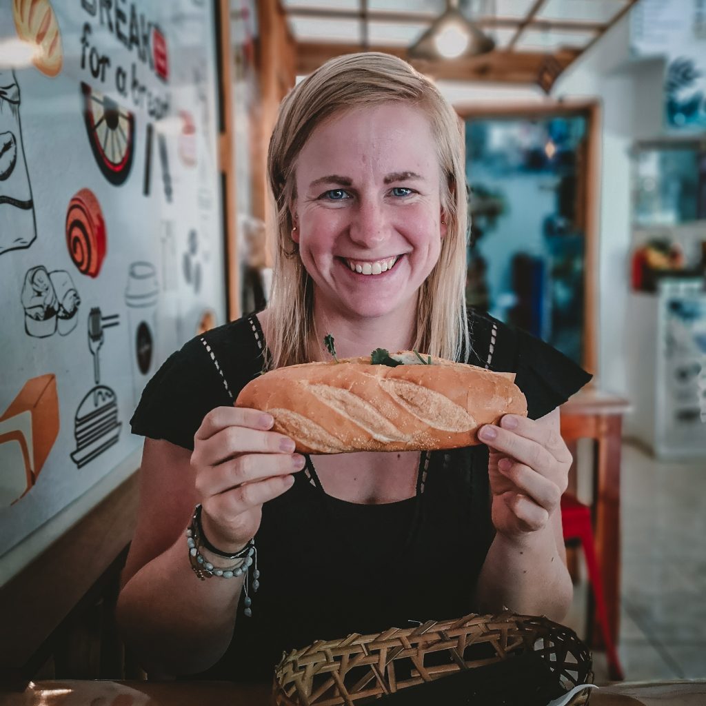 Auf dem Weg zu unserem heutigen Nachmittagsprogramm, machen wir Halt an einem Sandwich-Stand. Für umgerechnet knapp 1,30 € snacken wir zwei Baguettes. Das beste daran? Definitiv der Koriander 🙌 Wir lieben diese kleinen Stände an jeder Straßenecke, an denen man gefühlt 24/7 ein gut gefülltes und frisch belegtes Baguette bekommt. Auch die Einheimischen (und die einheimischen Hunde) halten hier nacheinander mit dem Roller und decken sich ein.