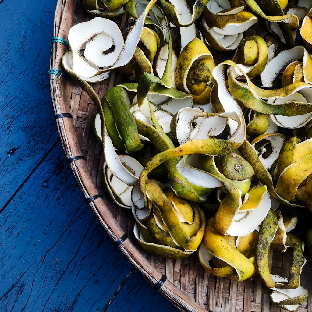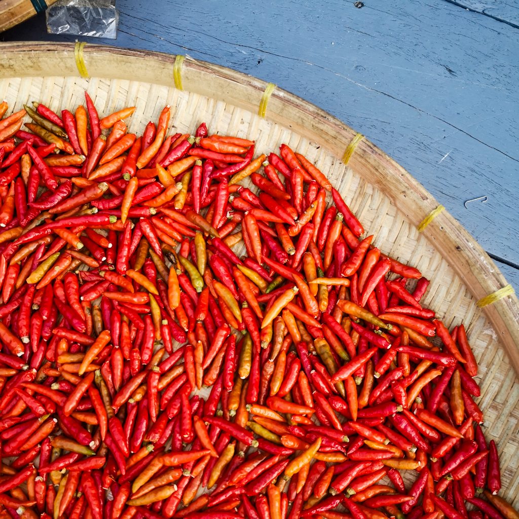Nach dem Besuch des Tempels laufen wir durch die Straßen des historischen Viertels. Immer wieder gibt es kleine Geschäfte, es werden Reisküchlein, Chilis und Mandarinenschalen in großen Bambusschalen getrocknet. Es ist nicht zu voll und wir lassen uns langsam zu unserem nächsten Programmpunkt treiben.