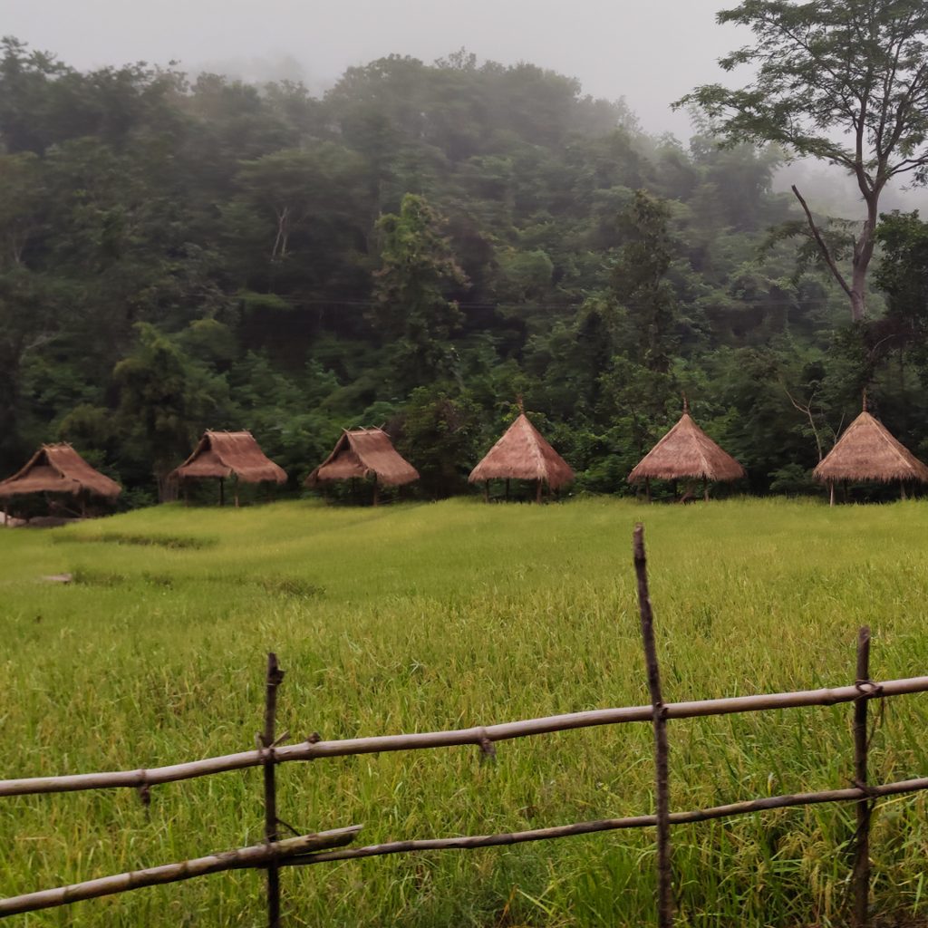 Heute ist es ziemlich bewölkt und neblig, eine leichte Feuchtigkeit setzt sich auf dem Handy ab, während Caro uns navigiert. Ausgerechnet heute haben wir natürlich keine Regenjacke oder einen Pulli dabei. Hoffentlich fängt es nicht richtig an, zu regnen. Der Weg ist ganz schön, vor allem das letzte Stück, als wir direkt am Mekong entlangfahren. Als wir ankommen, erstreckt sich ein riesiger Parkplatz vor unseren Augen. Jetzt ist er noch fast leer.