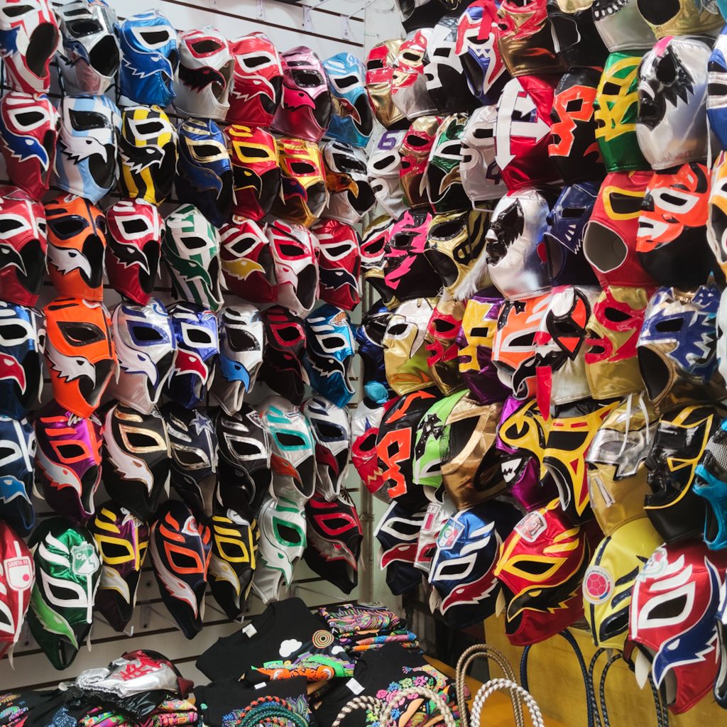 Statt einem Duell treten direkt vier Kämpfer in zwei Teams gegenaneinander an, Tag-Team-Edition, das ist in Mexiko im Gegensatz zu anderen Ländern durchaus üblich. Besonders in den ersten Minuten sitzen wir mit offenen Münden und aufgerissenen Augen auf unseren Plätzen: Was zur Hölle passiert hier gerade? Die Kämpfer, wir müssen erwähnen, dass die Männer mit Sicherheit über 100 kg auf die Waage bringen, zeigen einen wahnsinnigen Showkampf. Sie springen aufeinander, lassen sich mit voller Wucht auf den Boden des Rings knallen, stehen wieder auf und „kämpfen“ weiter. Manche Angriffe sind so lustig gespielt, dass es unfassbar absurd wirkt und gleichzeitig aber superspektakulär aussieht. Im nächsten Moment katapultieren sich die Kämpfer aber mit so einer Wucht zu Boden oder springen aus dem Ring heraus, dass uns fast der Atem stehen bleibt. Das muss doch weh tun! Die Zuschauer schreien, klatschen und pfeifen um die jeweiligen Kämper anzufeuern. Es ist eine wahnsinnige Stimmung in der gesamten Arena. Am Ende von jedem Kampf werden jeweils vom Schiri zwei Sieger gekürt. Dann folgt der nächste Kampf. Die Kämpfer tragen neben den engen und farbenfrohen Masken auch aberwitzige Outfits, enge, leuchtende Unterhosen und passende Stiefelchen. Egal ob orange-leuchtend mit Katzenöhrchen, weiß-glitzernde Outfits oder komplett in schwarz, der Kreativität sind keine Grenzen gesetzt. Hauptsache schrill und bunt. Die Abläufe sind übrigens weitestgehend einstudiert und auch der Sieger steht meist schon zu Beginn fest. Manche Einlagen sollen aber auch teilweise improvisiert werden, was beim Zuschauen fast unvorstellbar erscheint. Kommt es bei einer Partei mal zu einer „Verletzung“ gibt es sogar einen Mann mit weißem Kittel, der für die ärztliche Versorgung verantwortlich ist. Und selbst nach der Show ziehen die Kämpfer die Show durch und verlassen zum Teil humpelnd und gestützt die Arena. Wir sind wirklich überrascht, wie krass dieses Erlebnis und diese Show ist. Damit hätte niemand von uns gerechnet. Einfach nur verrückt.
