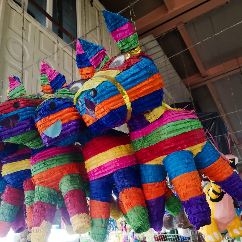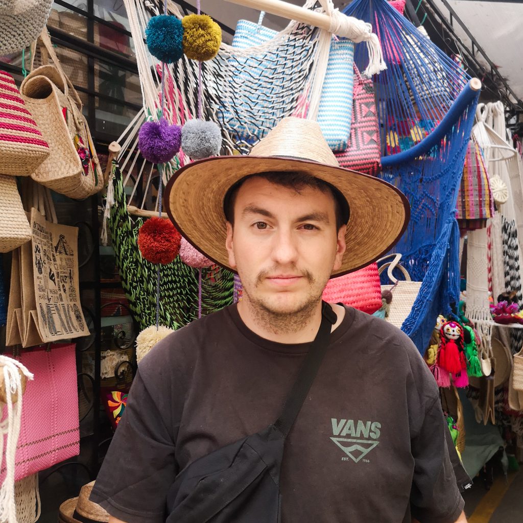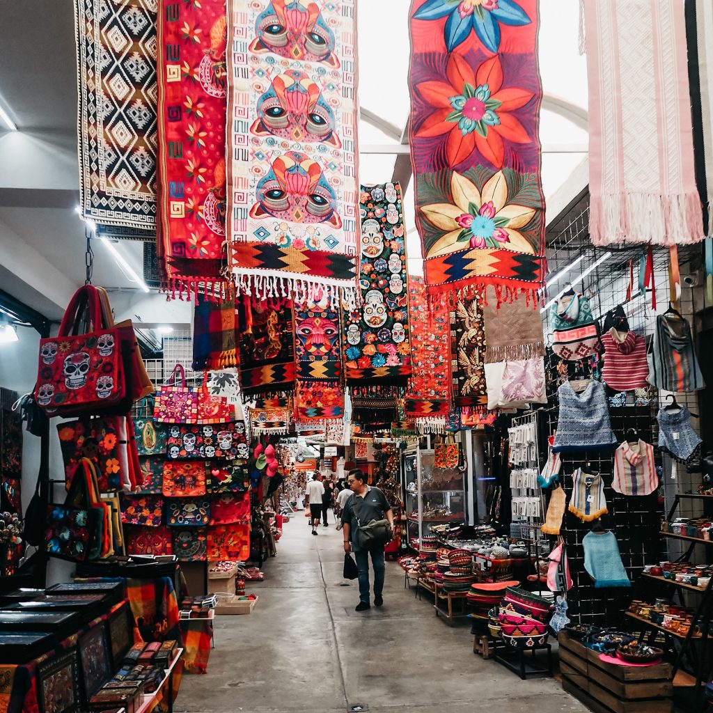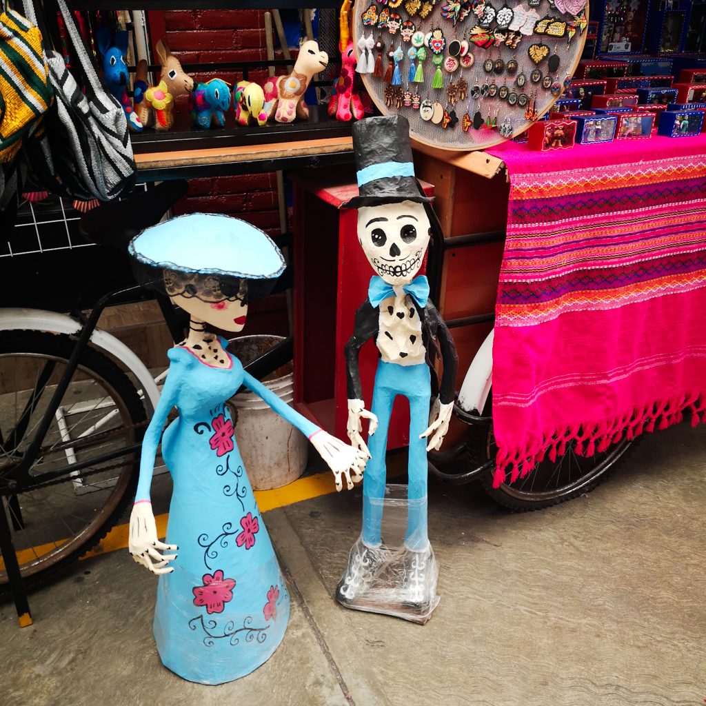 In der Nähe der Plaza Hidalgo findet sonntags ein Künstlermarkt statt. Alte und junge Künstler:innen verkaufen ihre ganz unterschiedlichen Werke. Unter den Bäumen in einem Park schlendern wir über den Markt, es sind richtig schöne Bilder dabei. Felix und Caitlin suchen sich ein paar richtig schöne aus. Eine wirklich tolle Erinnerung an Mexiko. Direkt neben dem Markt haben sich ein paar Leute zum Tanzen zusammen gefunden. Es wird Musik gespielt und besonders ältere Pärchen schwingen am Sonntagmittag das Tanzbein. Und wie! Es sieht so schön aus und passend einfach perfekt in diese so schöne und entspannte Atmosphäre. Im Anschluss besuchen wir noch eine nahegelegene Markthalle. Natürlich gibt’s auch hier jede Menge Souvenirs, Speisen, Getränke.