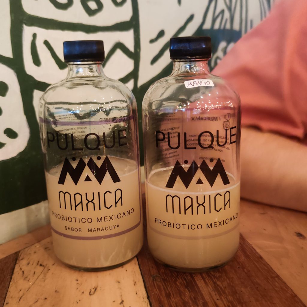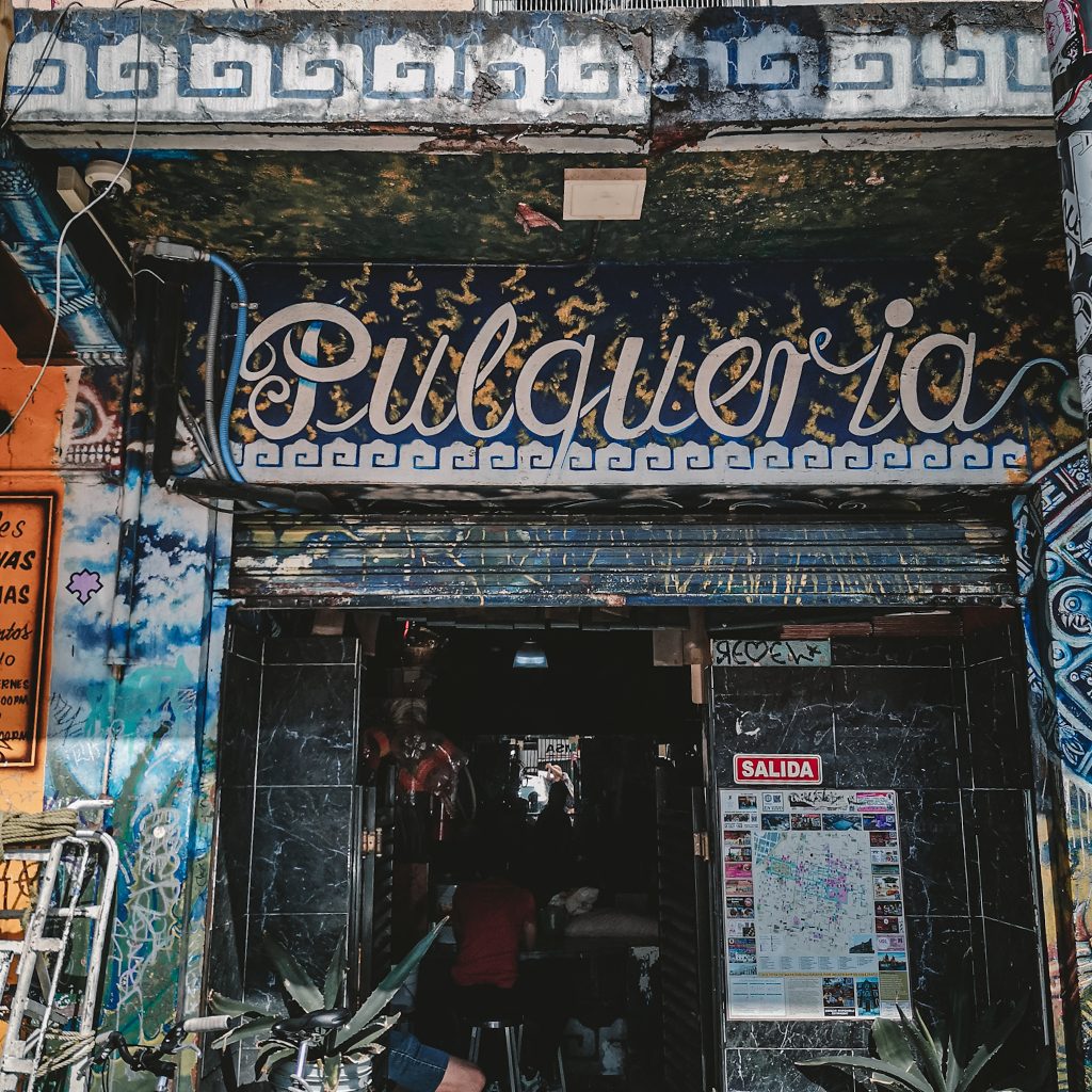 Was man an einem Samstagmittag um 15 Uhr in Mexiko macht? Keine Bundesliga schauen jedenfalls. Wir bekommen einen der wenigen freien Plätze in der Pulqueria „Las Duelistas“. Mit uns am Tisch sitzt ein älterer Herr, der uns nett zunickt, als wir uns setzen. Außer uns sind hier nur Locals und man könnte meinen, dass diese sich genau HIER und zu dieser Zeit jeden Samstag hier zusammen finden. Es gibt hier ausschließlich Pulque zu trinken. Entweder pur oder in verschiedenen Geschmacksrichtungen. Wenn man sich dann noch für eine Größe (Becher, Humpen, 1L Karaffe oder direkt einen ganzen Eimer) entscheidet, kann es losgehen. Da wir noch nie pure Pulque getrunken haben, starten wir mit diesem Versuch, auch wenn um uns herum alle bunte Karaffen vor sich stehen haben. Kurze Zeit später wissen wir auch warum. Neben der generell gewöhnungsbedürftigen, leicht dicklichen Konsistenz ist der Geschmack in erster Linie leicht säuerlich. Besonders Felix ist wenig angetan und teilt mit uns seine Assoziationen, die sich für den Rest der Zeit in unseren Köpfen festsetzen. Wir müssen definitiv noch eine weitere Sorte testen, also probieren wir uns an Guave – deutlich besser! Etwas süßer im Geschmack und daher umso leichter im Abgang. Den Alkohol schmeckt man übrigens kaum. Was für unser ultimatives Pulqueria-Erlebnis noch erwähnt werden muss: Die musikalische Untermalung. Auf einem Fernseher läuft die Jubiläumsshow von Juan Gabriel. Sensationell. Einzigartig. Mitreißend. Das fühlen auch die anderen anwesenden Gäste, die lautstark mit singen, mit schunkeln und sich dabei auch noch selbst filmen.