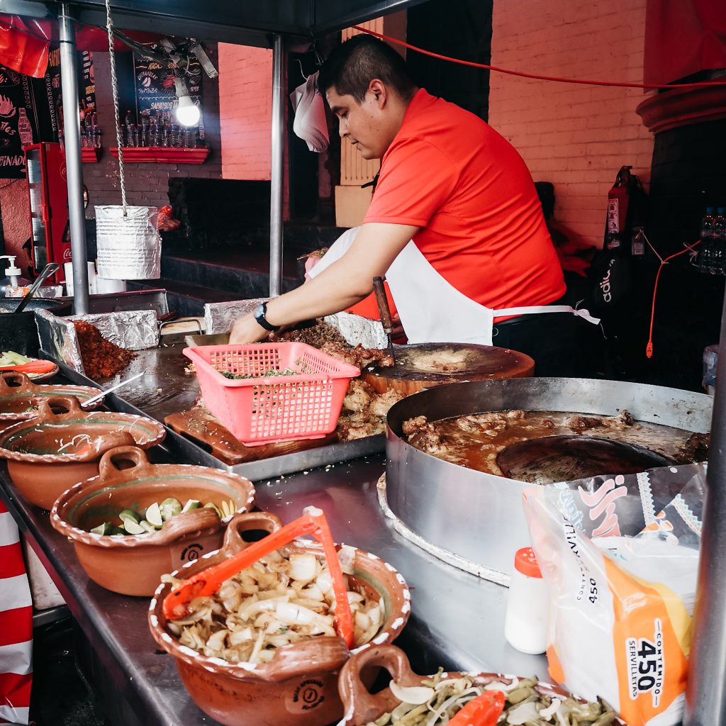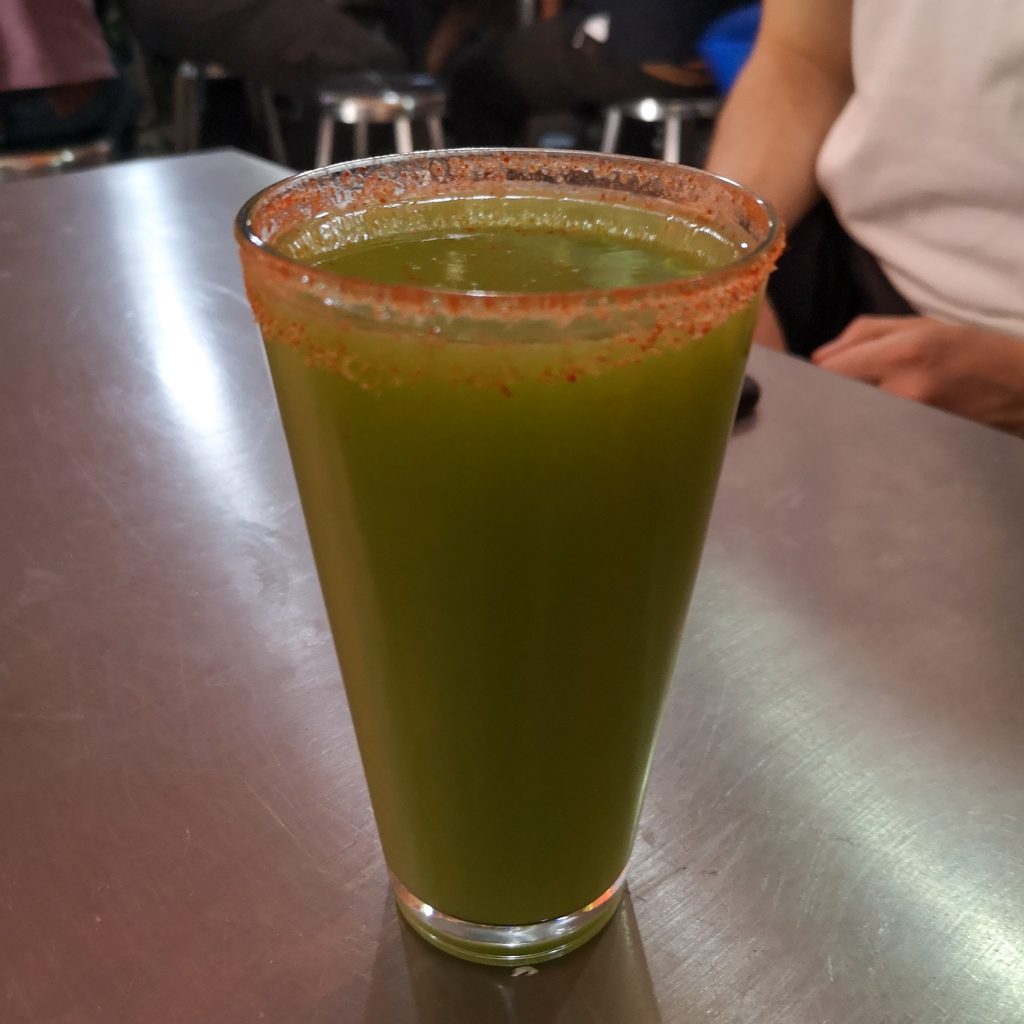 Nachdem wir in bester Stimmung unsere zweite Karaffe Pulque getrunken haben, testen wir zum Schluss noch ein Glas der Staudensellerie-Variante. Klingt komisch, schmeckt aber mit dem scharfen und salzigen Chili-Rand am Glas sehr gut. Begeistert und leicht beschwipst verlassen wir im Anschluss die Pulqueria während alle weiteren Gäste noch dort verweilen und den Samstag genießen. Wir laufen auf dem Heimweg noch einmal über die Märkte und testen an einem Straßenstand noch hervorragende Quesadillas. Ausnahmsweise komplett frittiert, sodass aus dem eigentlich geplanten kleinen Snack unser sättigendes Abendessen wird.