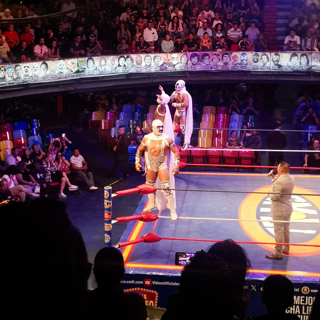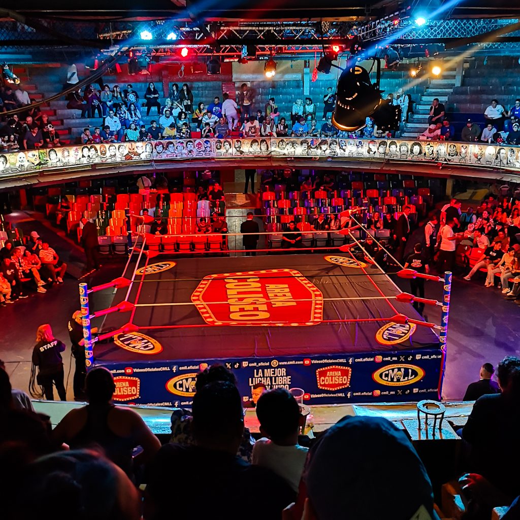 Zu Deutsch: Wrestling. Oder: Ringen. Laut Definition eine Mischung aus Show und Sport. So richtig wissen wir nicht, worauf wir uns einlassen. Wir haben zwar gehört, dass es heiß hergehen soll und dass die Kämpfer lustige Masken tragen, aber keiner von uns war schonmal bei einem Wrestling-Event. Tim und Rachel empfehlen uns, zum Coloseum zu gehen. Gesagt getan. Gegen Abend betreten wir die runde Arena (wie der Name ja schon verrät) und suchen unseren Platz in den oberen Rängen. In der Mitte der Arena befindet sich ein Boxring. Alles füllt sich nach und nach, am Ende ist das Coloseum fast komplett voll und die Stimmung gut angeheizt. Das gemischte Publikum ist gut drauf, überall werden Chips, Popcorn und Bier verkauft. Dann geht es auch schon los. Der Schiri kommt in den Ring und kündigt die Kämpfer nacheinander an. Diese kommen in Umhängen in den Ring gesprungen und bieten schon beim Einlauf eine unvergleichbare und extravagante Show. Einer von ihnen bringt direkt zu Beginn eine Art Feuerwerks-Fontaine mit, was beim Publikum für pure Euphorie sorgt – der Funke scheint überzuspringen 😉