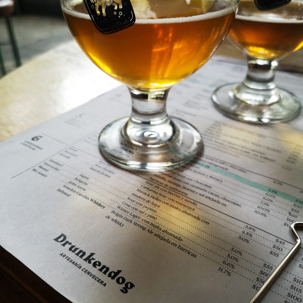 Verrückt, wir hätten nicht gedacht, dass es hier so viele davon gibt. Ein Laden geht sogar über vier Stockwerke und hat coolste Vintage Kleidung von Caps, Zweiteilern, Jeans bis hin zu Jogginghosen. Der einzige Haken: Es ist unfassbar teuer. Es macht zwar richtig Spaß, ein bisschen zu stöbern, gekauft wird aber nichts. Dennoch sind wir der Meinung, dass wir uns nach dem kleinen Shopping-Marathon ein kleines gemütliches Bier verdient haben. Ab zu „Drunken Dog“. Die Craftbeer-Bar hat Tim uns empfohlen. Hier gibt es so ziemlich aus jedem Land diverse Biersorten sowie selbstgebrautes Craftbeer. Wir bestellen uns ein paar unterschiedliche Sorten von mexikanischem Craftbeer und sind begeistert vom coolen Merch des Ladens. Alleine der Name spricht uns natürlich an. Nach dem Bier haben wir noch ein paar weitere letzte Dinge, die wir an unserem letzten Tag unbedingt noch gemeinsam abhaken möchten.