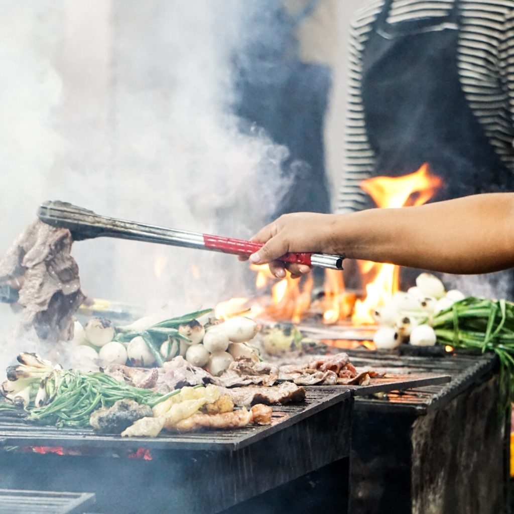 Weiter hinten gibt es eine große Markthalle. Hier wird hauptsächlich Fleisch verkauft. Zwar ist das Fleisch durch das Dach etwas vor der Sonne geschützt, gekühlt wird hier natürlich trotzdem nichts. Fleischstände finden wir ganz allgemein schon wenig ansprechend. Interessant anzusehen sind hier aber die „Grills“ in der Mitte des Ganges. Hier wird das Fleisch direkt gegrillt, was natürlich dazu führt, dass die gesamte Halle voller Rauch ist. Das stört natürlich niemanden.