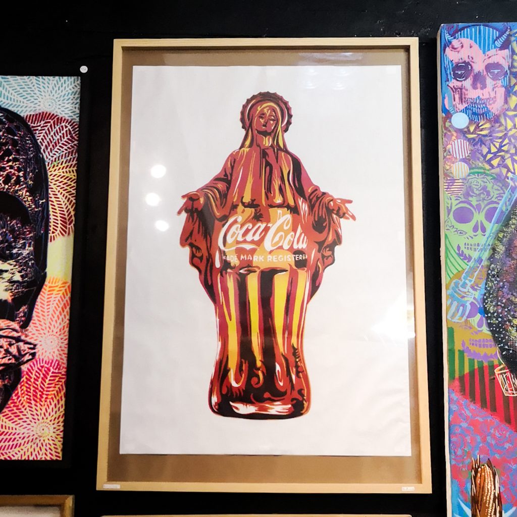 Dejan erklärt uns das Verhalten bei Erdbeben. Anders als bspw. in Japan oder Taiwan lautet hier die Empfehlung nicht unbedingt unter dem Tisch Schutz zu suchen. Die Gebäude hier sind nicht erbebensicher gebaut, aaaaaber dafür sind sie auch nicht so hoch gebaut und auf den Straßen gibt es ausgezeichnete Sammelstellen. Nach einem schweren Erdbeben 1931 kamen die Menschen an einem großen Platz, der heute durch ein riesiges weißes Zeltdach erkennbar ist, zusammen. Hier versorgten sich die Menschen in der Notsituation gegenseitig mit dem, was sie noch hatten. Daraus entstand eine Tradition und ein Feiertag, den die Stadt bis heute feiert: Guelaguetzka. Das bedeutet in der Sprache der Zapoteken übrigens so viel wie „Geben und Nehmen“, schön oder? - Ein Freund von Dejan betreibt eine kleine Galerie. Darin findet sich ein Bild zum Thema Coca-Cola, der Religion Mexikos. Diabetes ist die zweithäufigste Todesursache im benachbarten Bundesstaat Chiapas. Im Schnitt trinkt jeder Mexikaner und jede Mexikanerin pro Jahr 163 Liter Coca-Cola! Ein krasses Problem, das Coca-Cola aber auch eher in die Hände spielt und auch noch fleißig beworben wird, wie toll dieses Getränk ist.