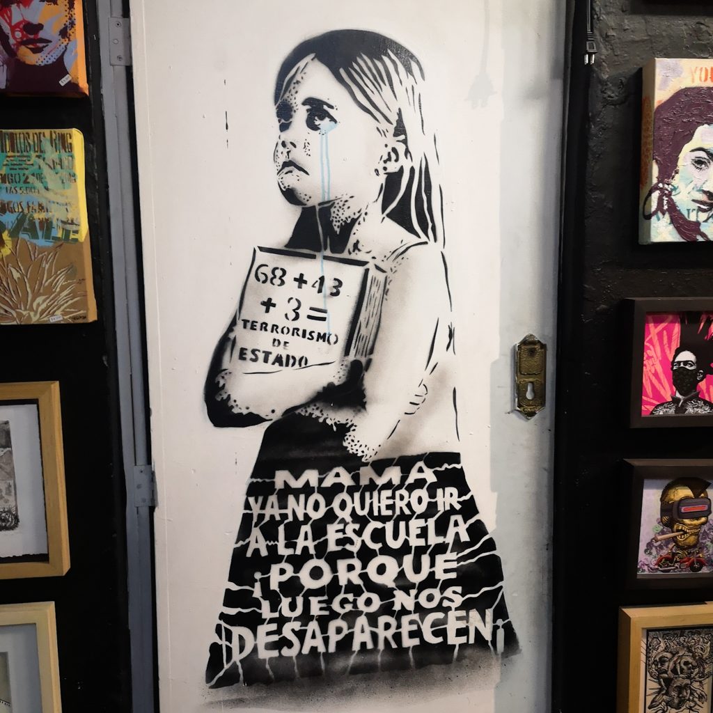 - Ein weiteres Bild beschäftigt sich mit den Zahlen 68, 43 und 3: Die 68 steht für das Jahr, in dem die mexikanische Regierung das Feuer auf Studierende eröffnet hat im Zuge von friedlichen Protesten. Die Zahl 43 steht für die 2014 entführten und ermordeten Studierenden. Und die Zahl 3 steht für drei weitere vermisste Personen. Die ausführlichen Erzählungen Dejans hierzu machen uns schon ziemlich nachdenklich und zeigen uns auch mal wieder die Realität in Mexiko auf.