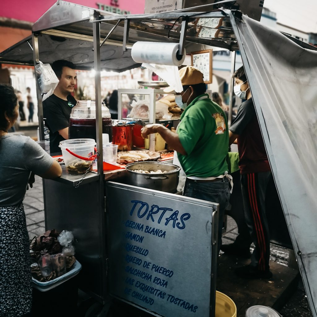 Kaum sind wir wieder auf dem Weg zurück Richtung Hostel, fängt es wieder an, wie aus Eimern zu schütten. Wir suchen Schutz in einem kleinen Taco-Laden, welch ein Zufall. Dann testen wir doch direkt mal die Tacos. Neben diversen Salsas gibt’s hier auch leicht scharf-säuerlich eingelegte und gekochte Möhren mit Thymian (zumindest ist das unsere Interpretation). Wahnsinnig gut! Danach laufen wir zurück ins Hostel. Es regnet noch den ganzen Nachmittag. Wir erledigen ein paar Dinge und drehen abends noch eine Runde um den Block.