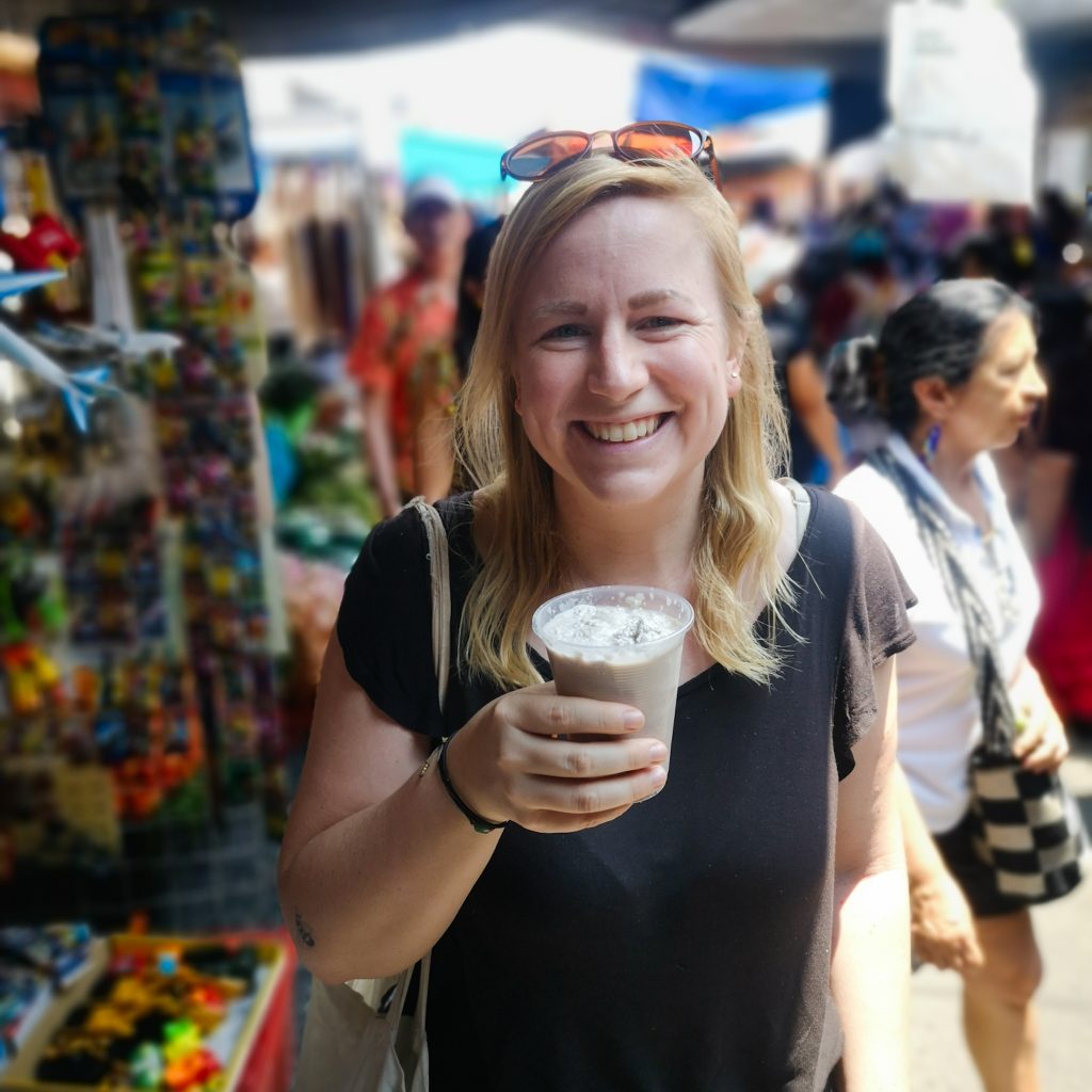 Ein weiteres Muss in Oaxaca: Schoki probieren. Entweder als Kakao, pure Schoki oder als Schoki-Eis. Wir entscheiden uns direkt für zwei Dinge. Zufälligerweise sind wir an einem kleinen Laden vorbeigegangen, der sehr vielversprechend aussah. Auf unsere Schoki-Spürnase ist Verlass. Der Laden sieht nicht nur gut aus, ist hervorragend bewertet und absolut untouristisch sondern auch einfach nur köstlich. Das Wort müsst ihr in letzter Zeit öfter lesen und ja, wir futtern uns wirklich durch diverse mexikanische Leckereien. Aber tatsächlich gibt es hier einfach wahnsinnig viele verschiedene, regionstypische Speisen und selbst jeder Taco schmeckt anders. Das können wir uns doch nicht entgehen lassen oder? Beim warmen Kakao können wir uns den Kakaogehalt sowie die Basis von Milch oder Wasser aussuchen. Es schmeckt wirklich intensiv und nicht zu süß. Das könnte man glatt jeden Tag trinken, wenn der Platz nicht schon mit Kaffee besetzt wäre. Das Schokoladeneis ist übrigens auch eine 10 von 10 und erinnert Caro an das Cafe Schmitz Schoko-Sorbet von der Aachener Straße in Köln. Nur dass hier sogar noch kleine Kakaosplitter dabei sind. Was will man mehr?