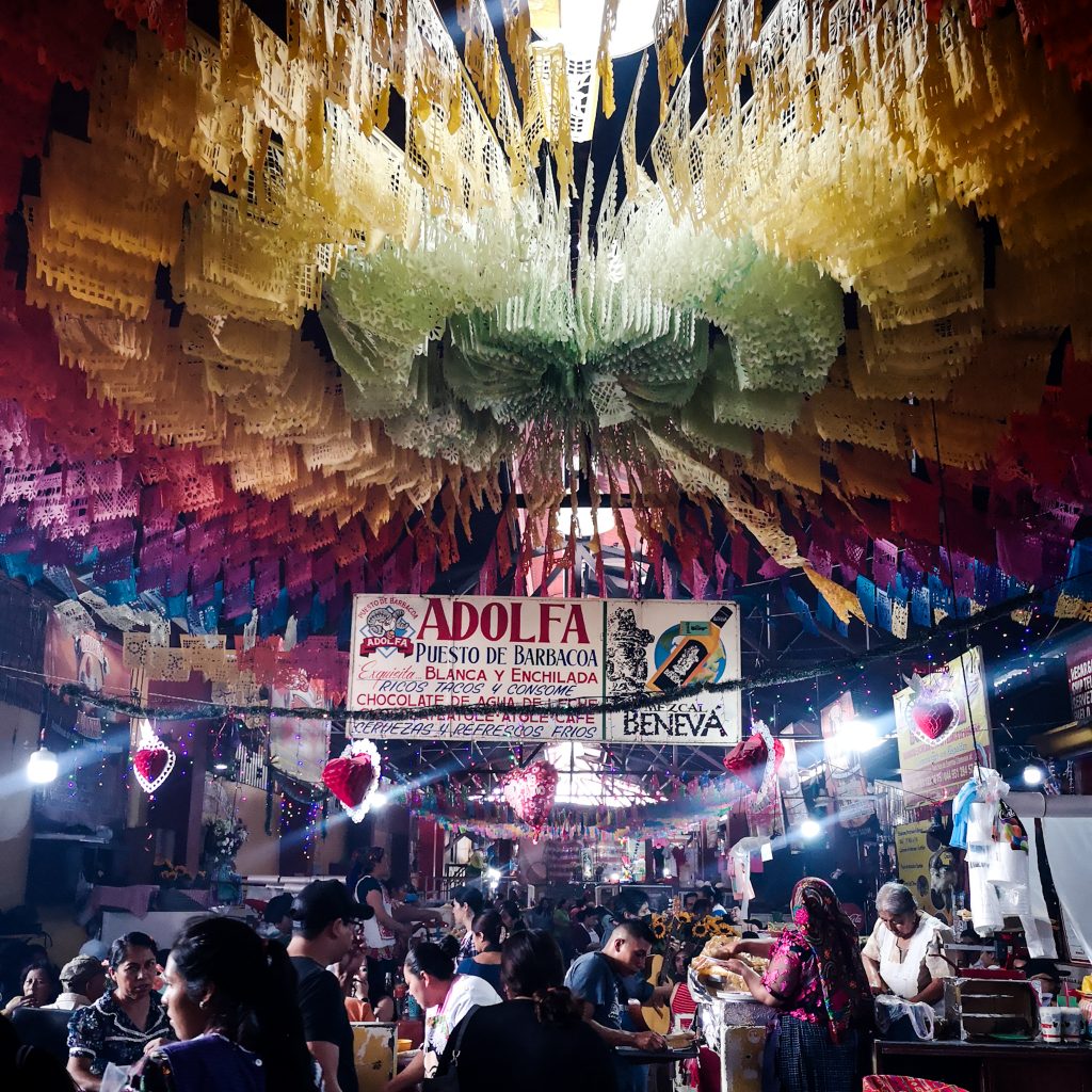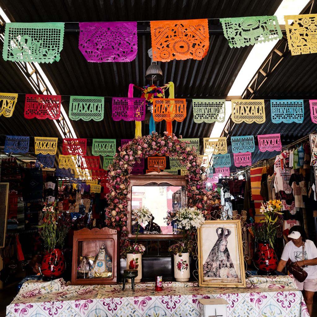Der Hauptwirtschaftsfaktor ist die Landwirtschaft. Hier werden Zuckerrohr, Zitronen, Apfelsinen, Luzerne, Gerste, Mais, Avocado. Pinienzapfen, Reis, Melonen, Aloe, Kaffee und Tabak angebaut. Und natürlich Agave für den Mezcal. Kein Wunder also, dass die Märkte wahnsinnig toll sind und die Bandbreite an diversen Speisen und Getränken zum Probieren einlädt. - Kunst