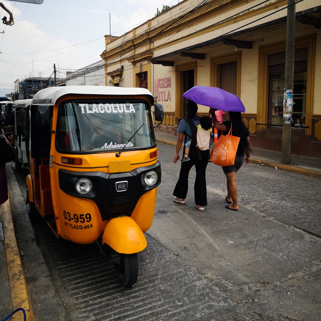 Die Nacht war verdammt heiß in unserer kleinen Saunakammer. Wir haben weder Klimaanlage noch einen Ventilator, geschweige denn ein Fenster. Da ist es dann auch gar nicht so schlimm, dass nur kaltes Wasser aus der Dusche kommt und wir dabei auch noch schnell und wassersparend einmal drunter hüpfen. Nach dem Frühstück machen wir uns auf den Weg zum Stadion. Denn von hier aus soll der Bus Richtung Tlacoluca fahren. Wäre da nicht das Fahrradrennen, das genau auf dieser Straße verläuft. Mal wieder kommt die altbekannte Touri-Taktik zum Einsatz. Wir spotten ein paar hellhäutige Menschen, die erst ebenfalls suchend herumlaufen, bei jemandem an der Straße anhalten, sich kurz unterhalten, in diverse Richtungen zeigen, nicken, lächeln und weitergehen. Safe. Die Gruppe verfolgt das gleiche Ziel. Die Taktik, einfach unauffällig, mit etwas Abstand folgen. Einmal die Straße herunter, hinter der nächsten Ecke und schwupps sitzen wir im richtigen Bus. Es steigen immer mehr Leute hinzu und nach ca. einer halben Stunde Fahrt, kommen wir in Tlacoluca an. Nach dem Weg müssen wir erst gar nicht fragen. Direkt hinter dem Ausgang befinden sich schon die ersten Stände des riesigen Marktes. Klar, ein paar Touris sind auch vereinzelt unterwegs, aber hauptsächlich herrscht ein wildes Markttreiben unter den Einheimischen.