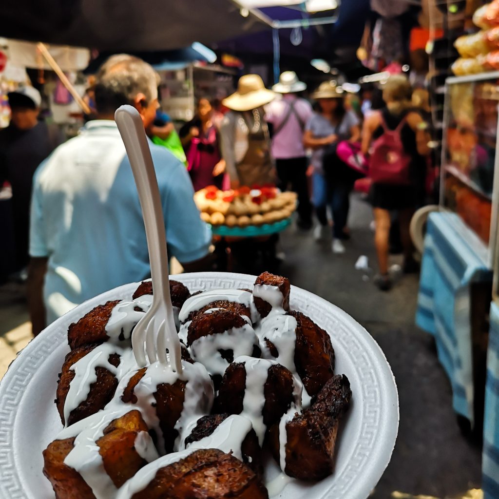 Gegen Ende gönnen wir uns noch einen kleinen Snack: frittierte Platano (Essbanane). Danach treten wir wieder den Heimweg an.