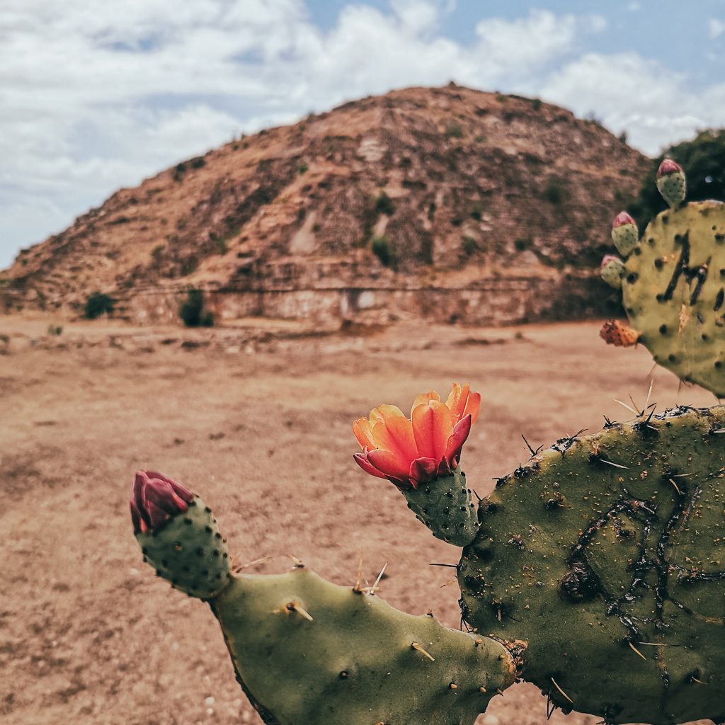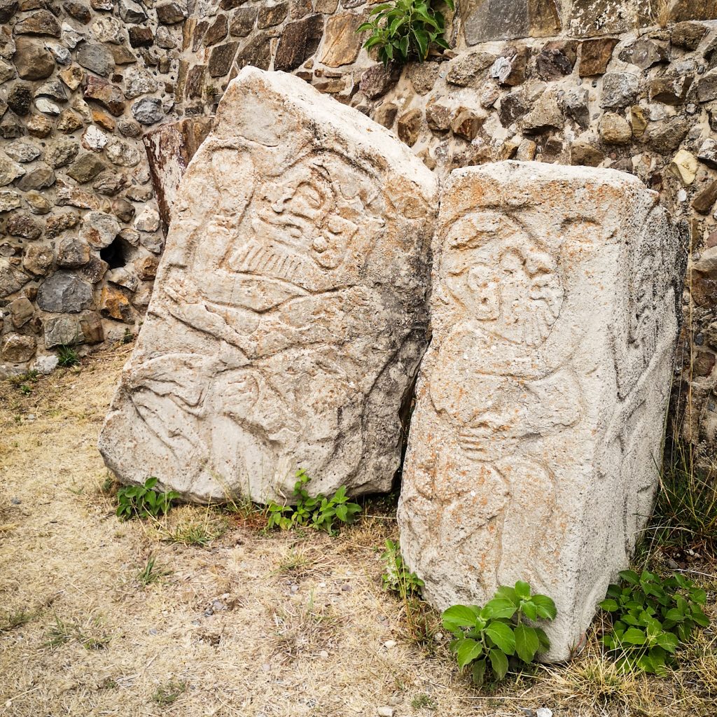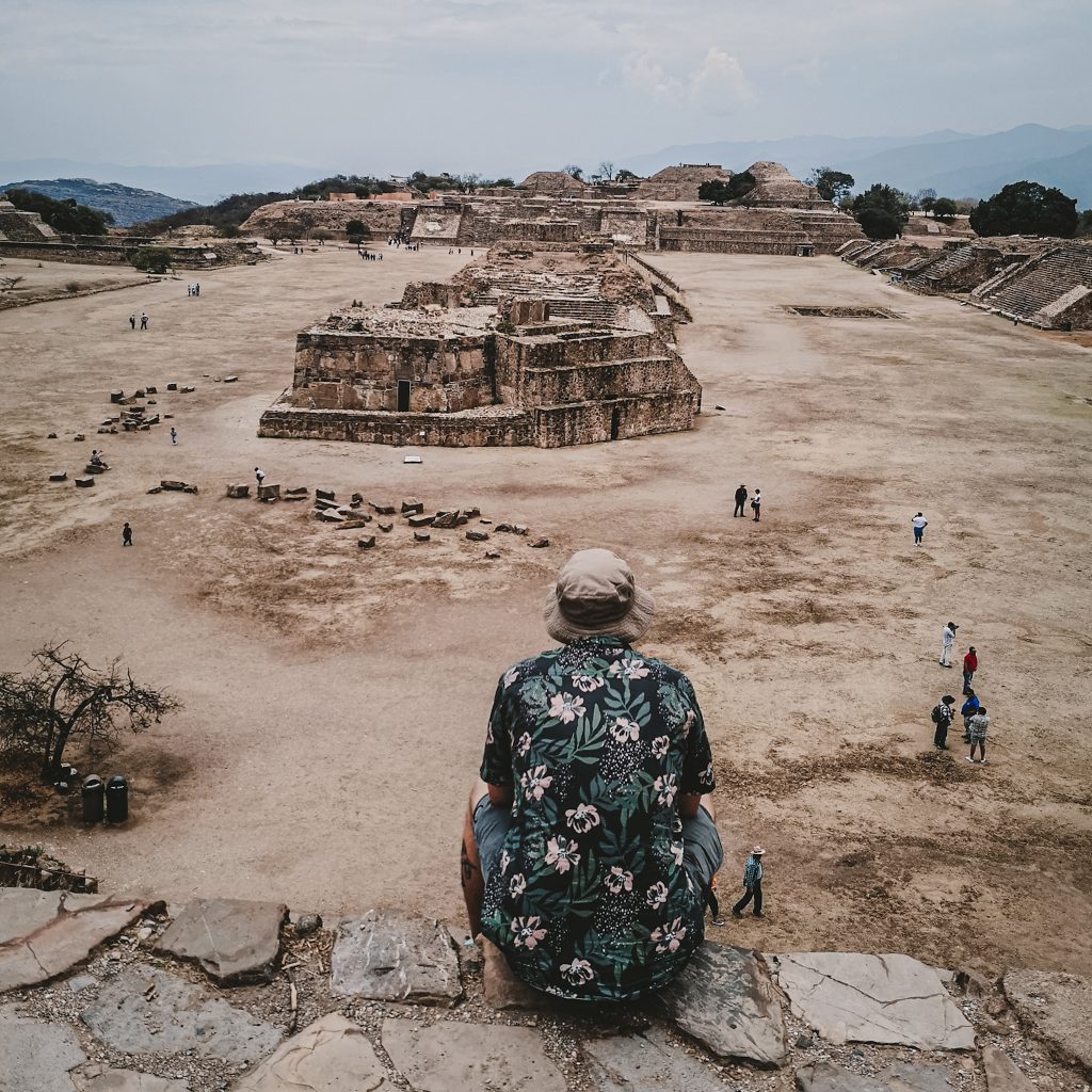 Das erklärt auch den etwa 300×200 m großen Hauptplatz, den wir als hervorragende Open Air Eventlocation betrachten. Außerdem beherrschten die Mixteken, die den Ort später von den Zapoteken übernommen haben, eine fortgeschrittene Verarbeitung von Metall zu aufwendigen Schmuckstücken, Knochenschnitzereien mit Hieroglyphen und Kalenderinschriften, die später unter den Opfergaben gefunden wurden. Die Aussicht vom Berg ist übrigens auch durchaus sehr nett. Nachdem wir heute morgen etwas am Plan gescheitert sind, mit den öffentlichen Bussen hierher zu fahren (wir sagen nur Straßensperrung, Haltestellen- und Beschilderung Fehlanzeige, Auskunft gleich null), haben wir uns dann für die Touri-Variante entschieden. Simpel in ein Hotel spaziert, ein Ticket gebucht und mit nem Minivan hochgefahren worden. Es war tatsächlich auch gar nicht so teuer, hat uns aber leichte Touri-Vibes gegeben. Genau wie die ersten 10 Minuten im kleinen, aber vollen und vor allen Dingen lauten Museum. Manchmal muss man auch mal sagen dürfen: Wir mögen keine Menschen und Kindergruppen schon gar nicht. Aus dem Museum, das übrigens nur mit spanischen Tafeln ausgestattet war, sind wir also etwas negativ voreingenommen auf das Gelände der Ruinen gestartet.
