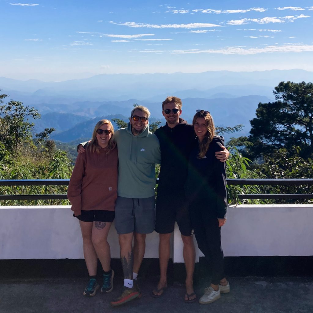 Ach ist es schön wieder zu viert unterwegs zu sein. Wir genießen die gemeinsame Zeit sehr und irgendwie hat man das Gefühl, dass man die Freude über all die schönen Dinge in de Umgebung nochmal mehr zu schätzen weiß. Mal abgesehen vom „Frühstück“ der Unterkunft, das ist mit Krümelkaffee, Toast, „Butter“ und Bananen wenig reichhaltig. Wir stärken uns stattdessen in einem kleinen Café um die Ecke und machen und im Anschluss auf den Weg zu einer Höhle. Unterwegs halten wir noch an einem schönen Aussichtspunkt in den Bergen. Obwohl die Sonne scheint, ist es morgens noch frisch und wir freuen uns umso mehr, einen Moment in der Sonne zu verweilen.
