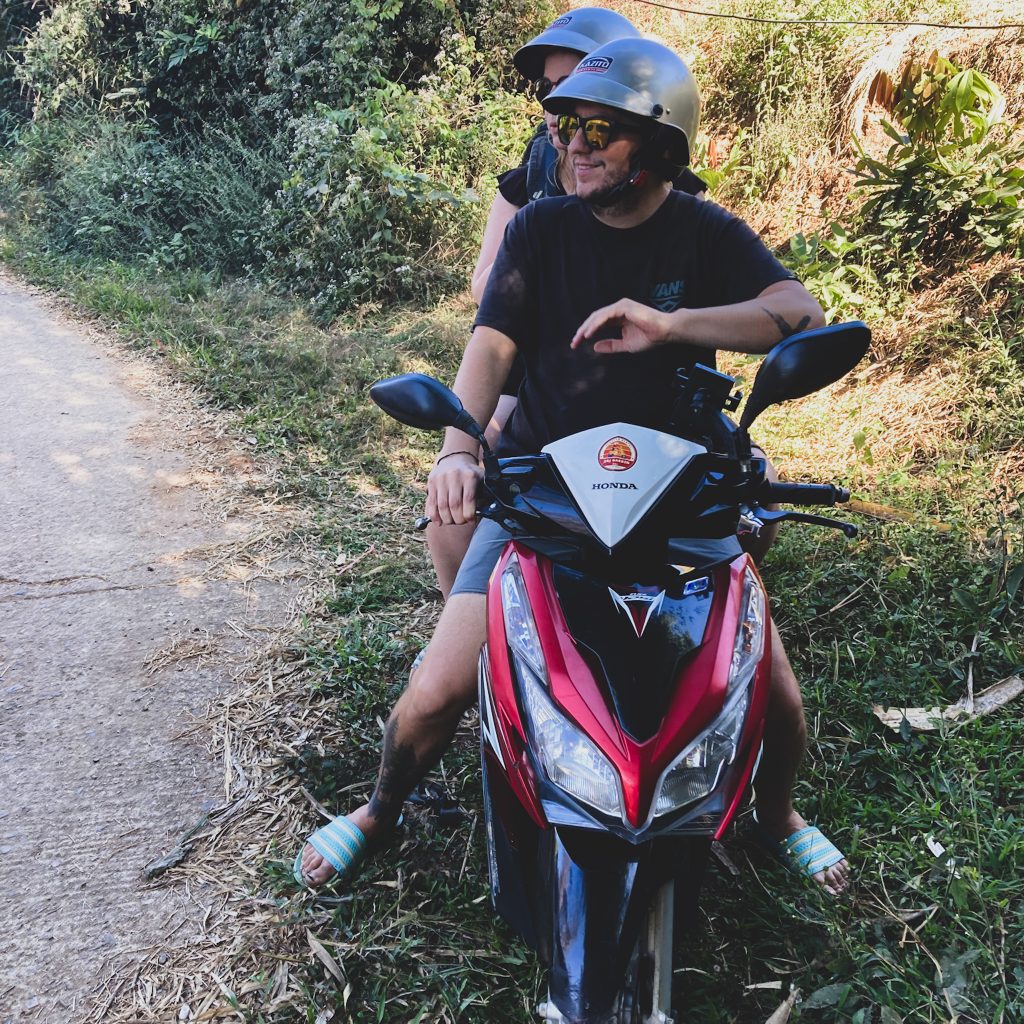 Zurück beim Aussichtpunkt von heute morgen halten wir erneut. „Sind eure Reifen auch so komisch in den Kurven?“ Ähm, nein, aber wir haben auch keinen platten Reifen. Genau, long story short: Der Hinterreifen der beiden hat sich verabschiedet, 30 Minuten bevor wir zuhause angekommen wären. Aber keine Chance, so können wir nicht weiterfahren. Wir rufen in unserer Unterkunft an und Konsti versucht Mamas Tochter auf Englisch zu erklären, was unser Problem ist. Irgendwann versteht sie, was wir meinen und lacht laut ins Telefon „Ohhhh no, wait, we will help.“ Wir machen es uns also erstmal beim Aussichtspunkt bequem und nach ca. einer halben Stunde naht die Hilfe. Mit einem Pickup kommt die Tochter von Mama mit ihrem Freund angedüst. Kurzerhand wird der Roller aufgeladen und Flo und Chrissi eingeladen. Eigentlich wollte sie den Reifen schon längst erneuern lassen, es war schon abzusehen, dass dieser nicht mehr lange hält. Gut, dass wir schon fast wieder zuhause und nicht mitten in der Pampa waren.