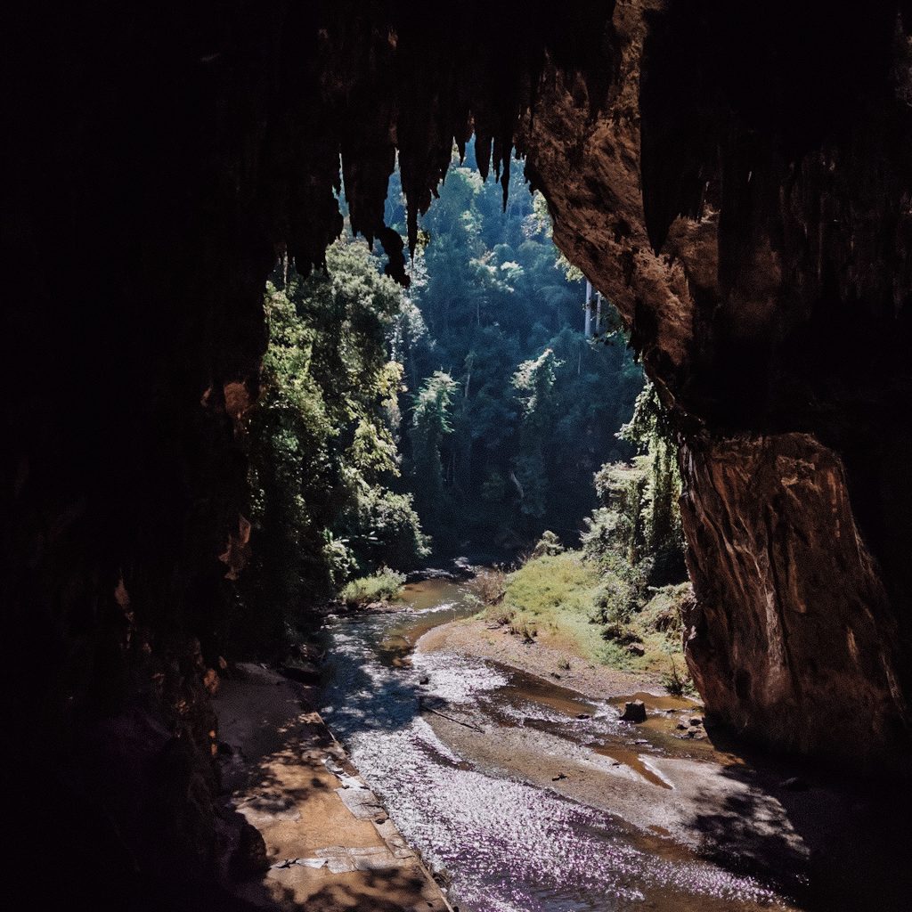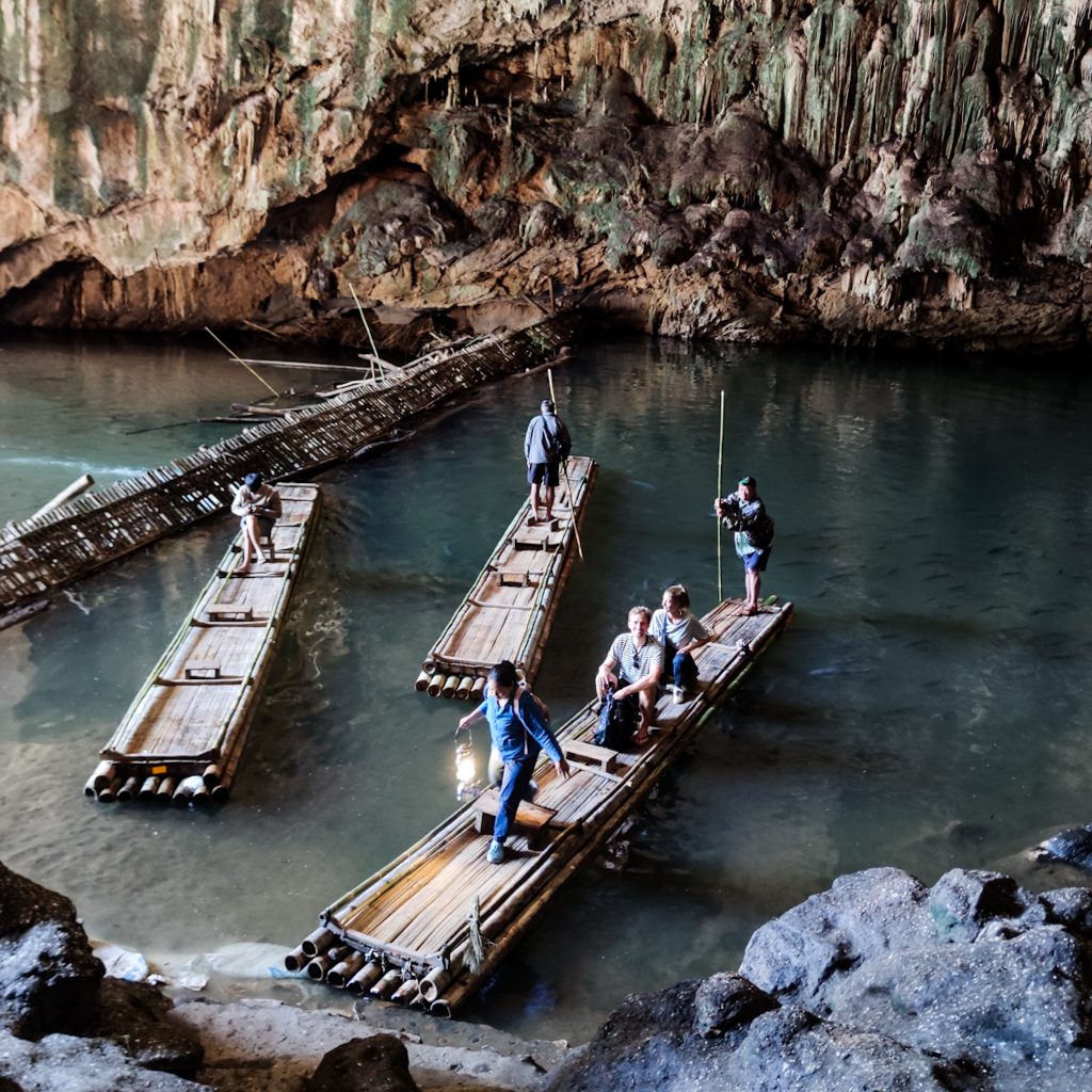 Die Tham-Lot-Höhle ist ein 1.666 m langes Höhlensystem, durch welche ein Fluss fließt. Mit einem Guide und einer kleinen Laterne (ein Hoch auf unsere Stirnlampen) erkunden wir verschiedene Höhlenabschnitte mit riesigen Stalagmiten und Stalaktiten.