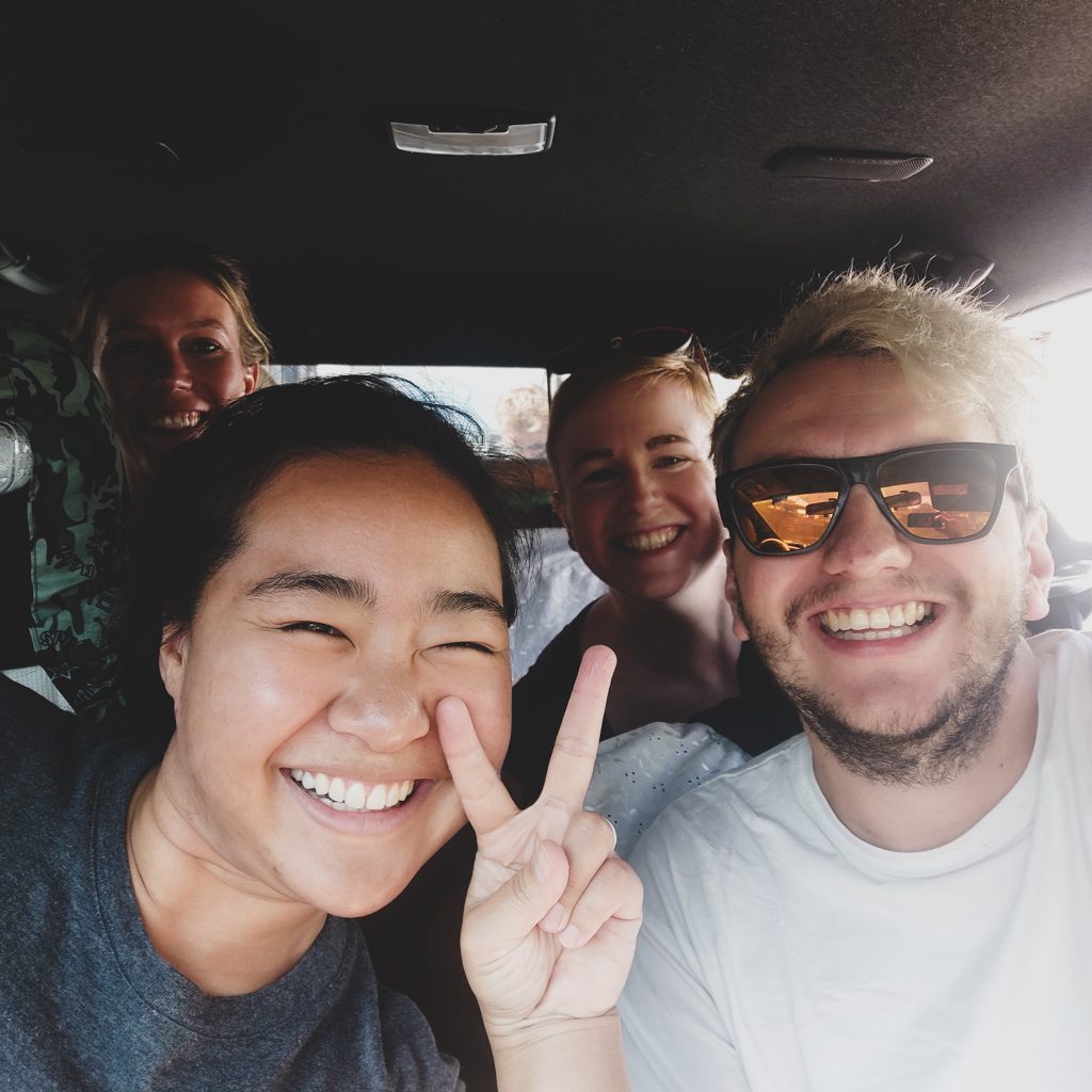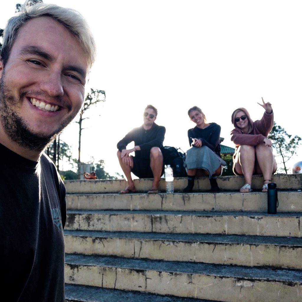 Yeah, jetzt müssen wir nur noch vom Bahnhof in die Stadt kommen. Natürlich kommt keines der bestellten Grabs. Dann eben mit einem Sammeltaxi. Darin wird fleißig gesammelt und so fahren wir mit acht weiteren Leuten gequetscht in die Stadt. Aber mittlerweile ist uns alles egal, wir freuen uns einfach, nur anzukommen. Und dann wartet auch schon das beste Begrüßungskomitee: Chrissi und Flo sitzen gut gelaunt und freudestrahlend in der Unterkunft. Wie schön euch wiederzusehen. Definitiv das Licht am Ende des Reisetag-Tunnels. Nach knapp 30 Stunden ist die Dusche und der darauf folgende Kaffee das Lebenselixier des Tages.