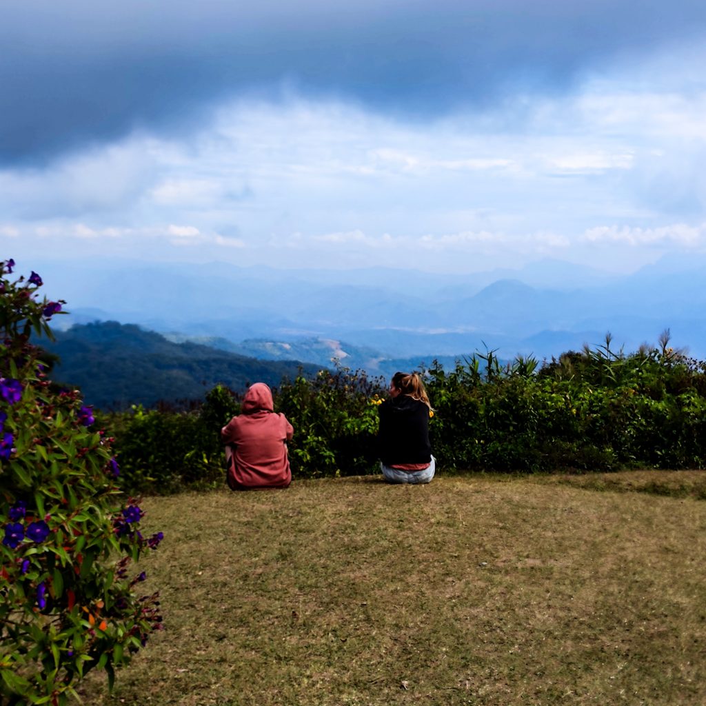 Danach geht es weiter Richtung Nationalpark. Heute ist die Straße super ausgebaut und es macht Spaß, mit dem Roller dir kurvigen Bergstraßen abzufahren. Nur der Nationalpark.. ja.. der hat uns tatsächlich etwas enttäuscht. Mit dem Roller fahren wir bis zu einem Aussichtspunkt. Die Aussicht ist schön, aber der Ort gleicht inmitten des Parks eher einem spießigen, amerikanischen Vorgarten mit gemähtem, grünen Rasen, akkurat angelegten Blumenbeeten und natürlich den dazugehörigen Touris, die sich tatsächlich vor diversen Blumen fotografieren lassen. Es gibt wohl auch noch Wanderwege, aber so richtig motiviert sind wir ehrlich gesagt nicht. Daher geht es für uns wieder Richtung Pai. Wir gönnen uns einen kleinen Mittagssnack und entspannen dann etwas in der Unterkunft.