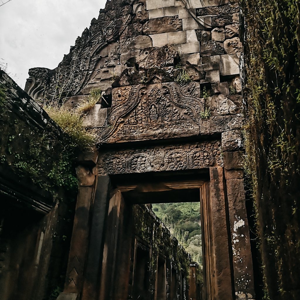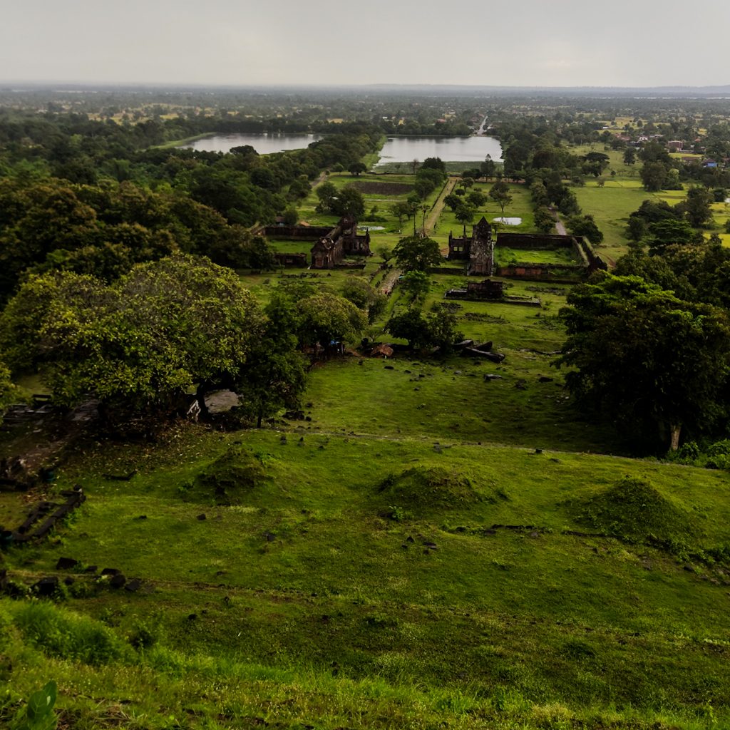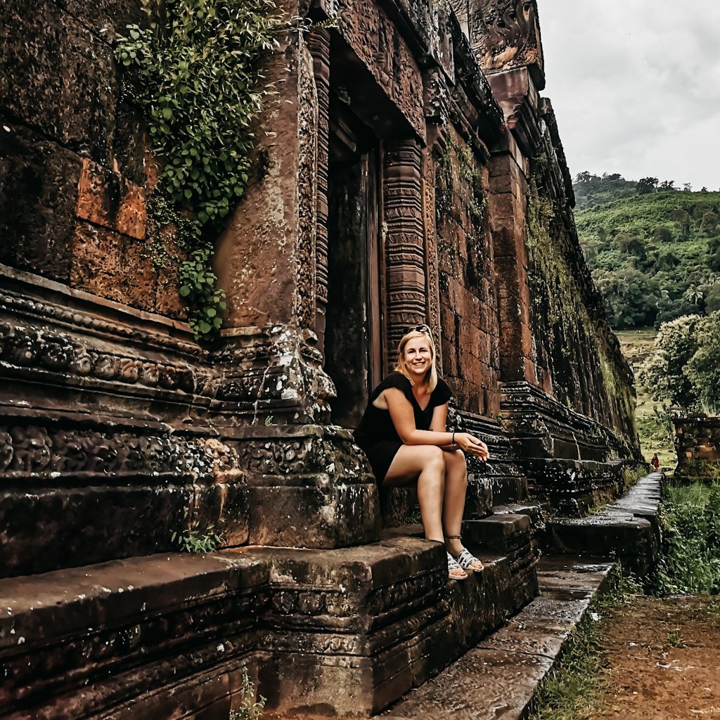 Wat is dat? Eine ehemalige Tempelanlage. Die heutigen Ruinen stammen aus dem 11. bis 13. Jahrhundert und gehören seit 2011 zum UNESCO Weltkulturerbe. Dazu gehört aber nicht nur die Tempelanlage, sondern auch der angrenzende Ort Champasak und Straßenüberreste, die nach Angkor Wat führte. Der Komplex ist ein wichtiges Beispiel für die Kulturen Südostasiens, insbesondere des Khmer Reiches. Das Museum ist (ehrlicher Weise) weniger aufschlussreich und so strukturiert wie die Wohnung von Karin Ritter. Wir begeben uns nach einem kurzen Besuch weiter zu den Ruinen. Sie beginnen am Fuß des Berges und über mehrere Ebenen zieht es sich nach oben.